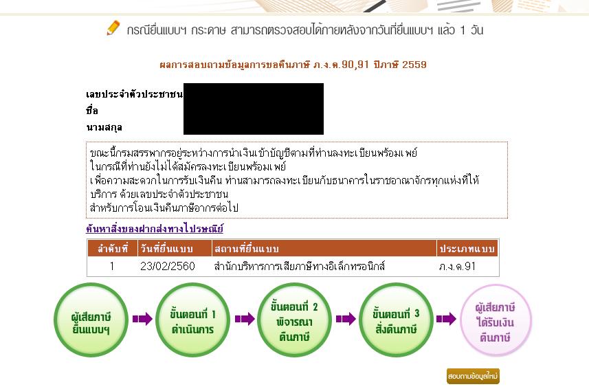 ยื่นภาษี (ไม่ได้สมัคร พรอมเพย์) ไม่เห็นแจ้งสถานะการจัดส่งเชคเลย