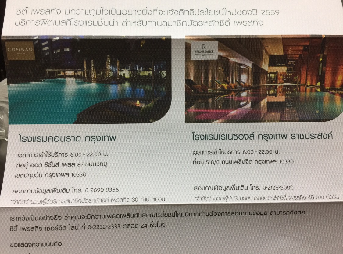 สอบถามครับว่า Fitness ของบัตรเครดิต Citi Prestige ที่โรงแรม Conrad, Renaissance, Radisson Blue, Shangri-La กับ Mariott Marquis เป็นอย่างไรบ้างครับ เดี๋ยวนี้สิทธิ์เต็มเร็วแค่ไหน วันธรรมดาหรือวันห