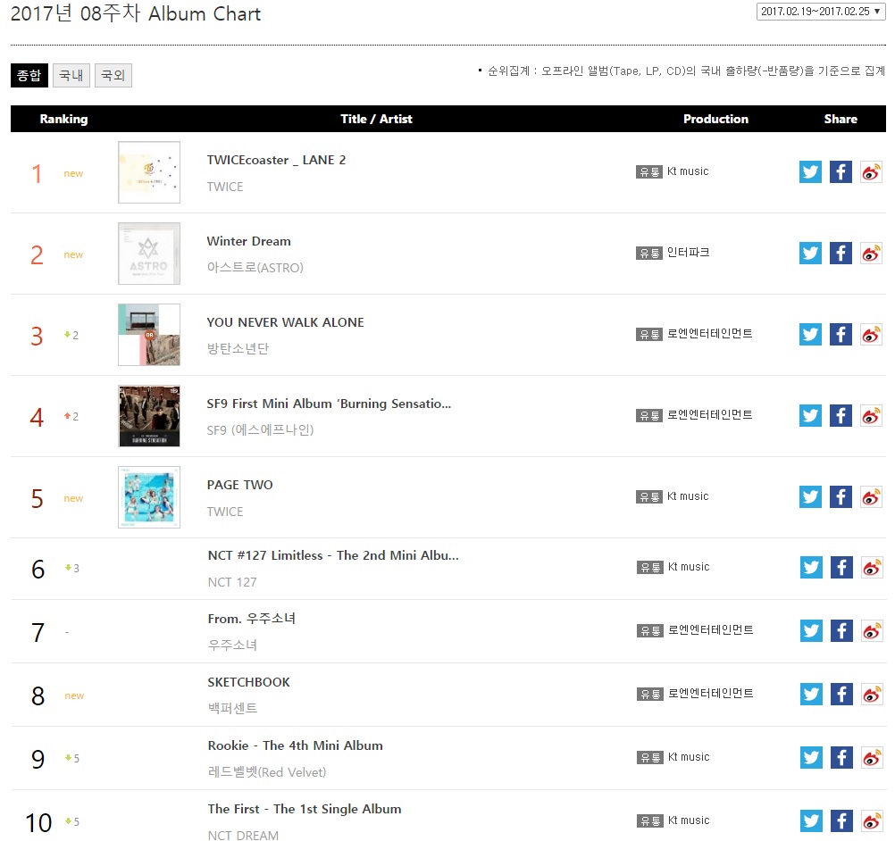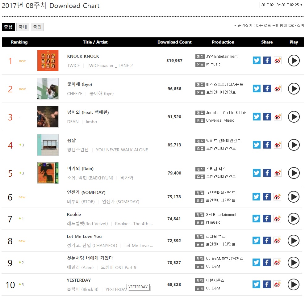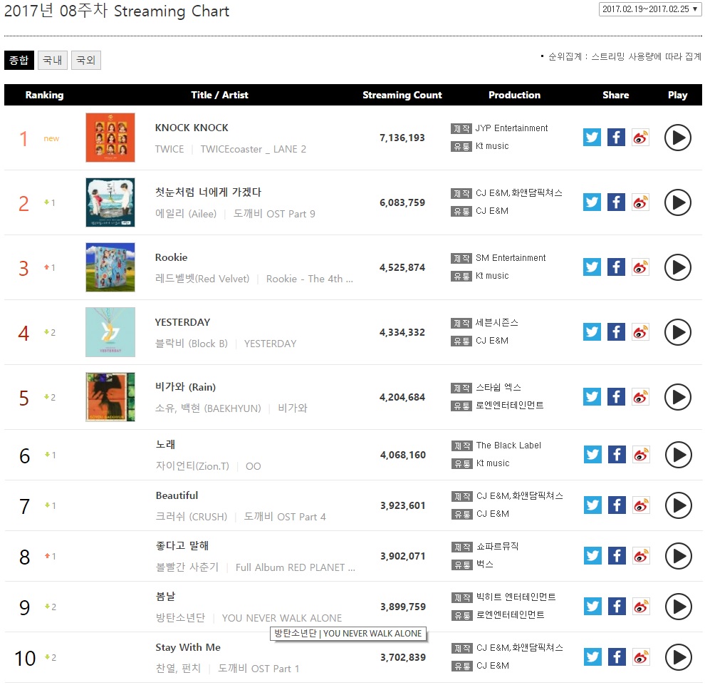 [K - POP] TOP 10 Gaonchart ประจำวันที่ 2017.02.19 - 2017.02.25