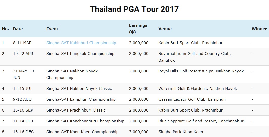 Thailand PGA Tour เป็นรายการทัวร์นาเมนท์ของไทย ที่สร้างนักกอล์ฟรุ่นไหม่ๆขึ้นมา