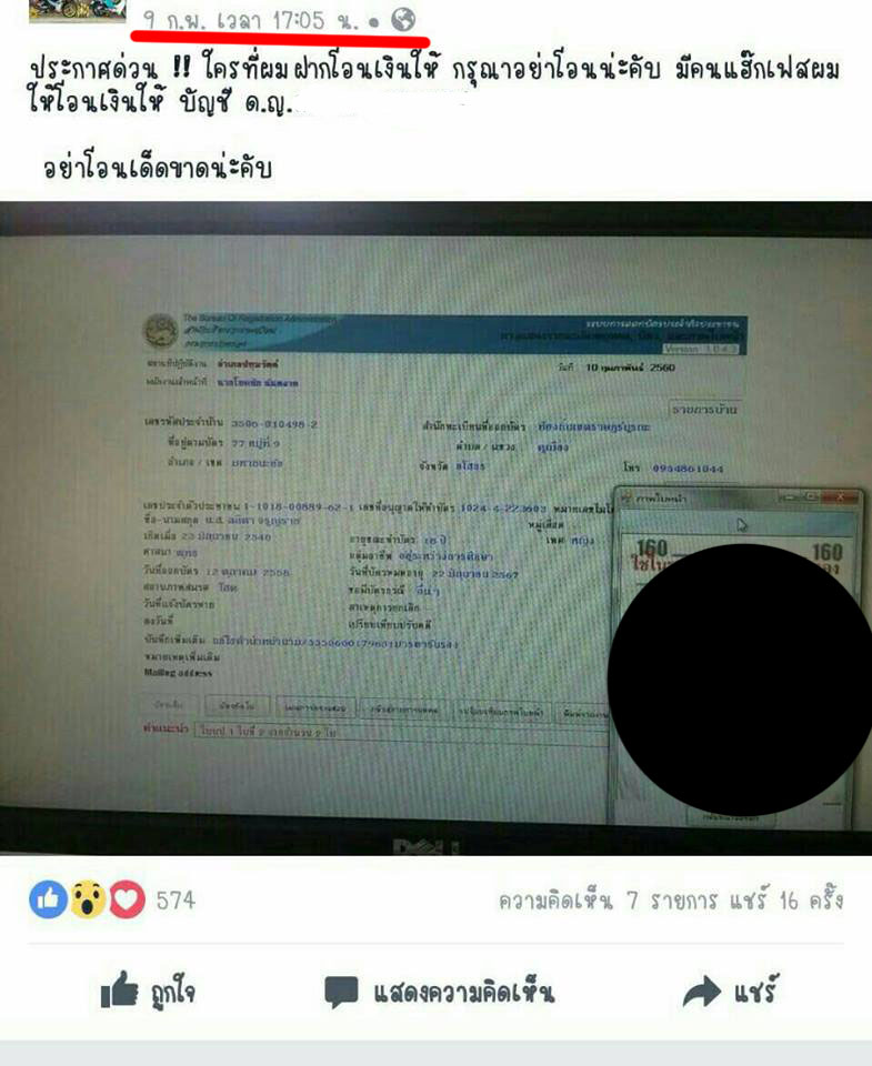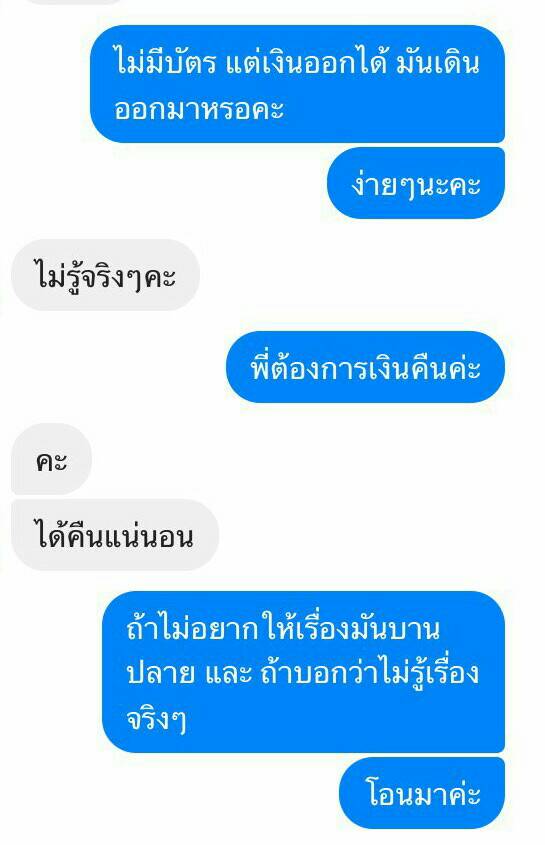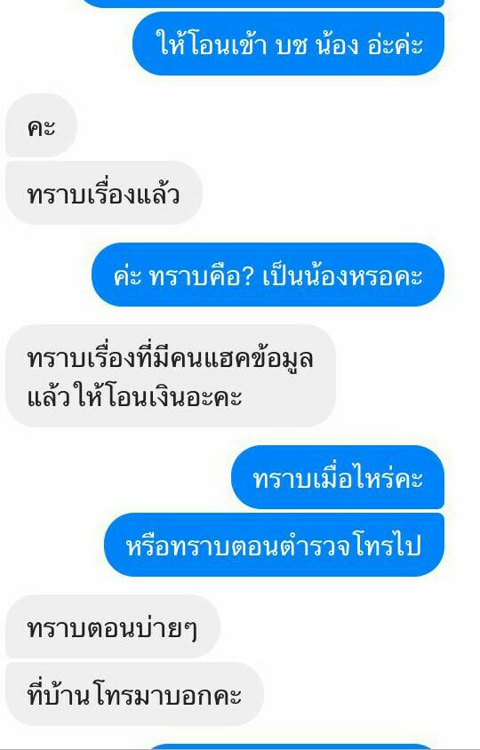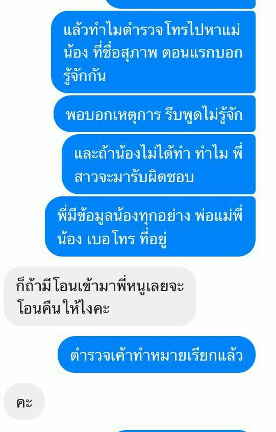 จนเจอตัวผู้ที่รับโอน ตำรวจเจรจาให้โอนเงินมาคืนให้ ธนาคารไม่ให้ความร่วมมือเลย แม้แต่น้อย !!! ให้คำแนะนำก็แค่ให้ไปแจ้งความ ให้อายัด ให้ตรวจสอบ ให้ทำอะไรก็ไม่ได้ช่วยเลย!!! จนเรื่องใกล้จะจบโดยการที่หนูหาข้อมูลคนร้ายเองจากเฟสบุ๊ค คุณตำรวจช่วยหาข้อมูลจากประวัติสำนักงานตำรวจแห่งชาติให้ และสุดท้ายพอได้หนังสือตราครุฑและลายเซ็นพันตำรวจที่ ธนาคารสาขาเดอะมอลล์ท่าพระต้องการ เอากลับไปให้ธนาคาร พนักงานมารับเอกสารแบบ งงๆและถามว่าจะให้ทำยังไงต่อ คือ จะทำอะไรให้ละคะ????? ถามมาอย่างนี้ จะให้หนูไปนั่งหาข้อมูลเองอีกมั้ยคะ หรือให้ทำเรื่องอายัดเอง?? ตำรวจเขาตามให้หมดแล้ว แม้แต่ข้อมูลธนาคารเค้าก็ตามให้ แล้วให้ไปเอาเอกสารมาทำไม ???ในเมื่อไม่รู้ว่าจะทำยังไง...