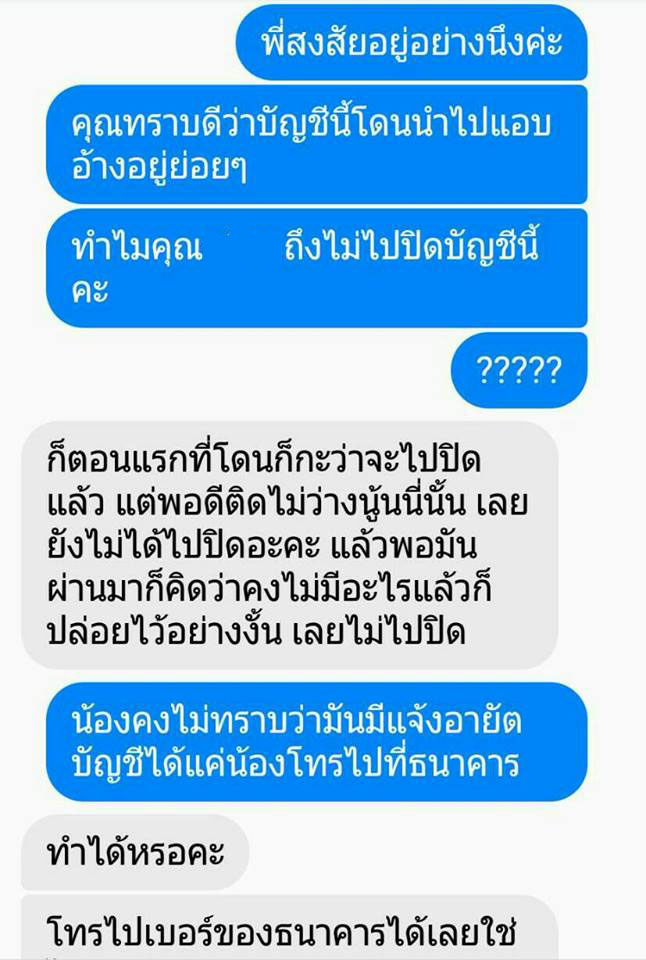 พอได้ใบแจ้งความหนูก็รีบกลับไปที่เจริญนคร36 พอไปถึง ก็บอกว่าไม่ใช่สาขาเจ้าของบัญชี อายัดให้ไม่ได้มันข้ามสาขา