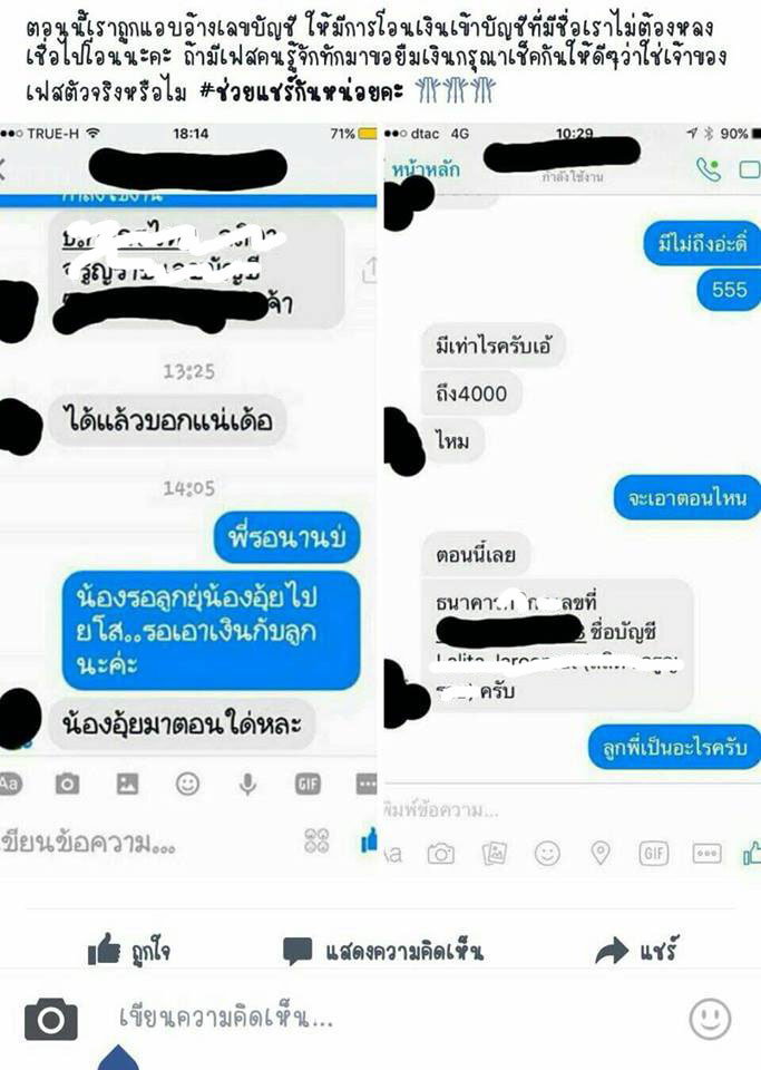 มีเพื่อนทักมาค่ะ ว่าขอยืมเงินหน่อย