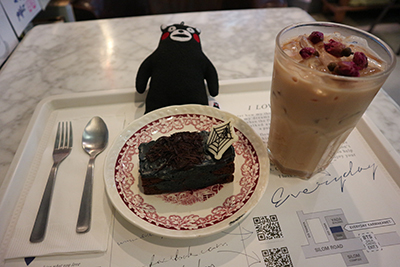มาแล้ววว เนื่องจากตอนที่ไปเป็นช่วงใกล้เทศกาล Halloween พอดี เราก็เลยสั่งเป็น TRICK OR TREAT CHOCOLATE CAKE กับ ROSE MILK TEA มาทานคู่กัน เข้ากันดีมากๆ!