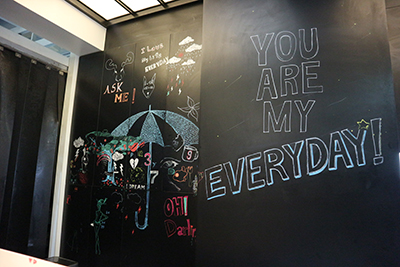 เขามีพื้นที่ให้วาดรูปเล่นแล้วแปะไว้ในร้านหรือเอากลับบ้านด้วยนะ แต่ก่อนที่จะมาวาดรูปเล่นไปหาไรกินรอดีกว่า เพื่อนไม่มาสักที =_=