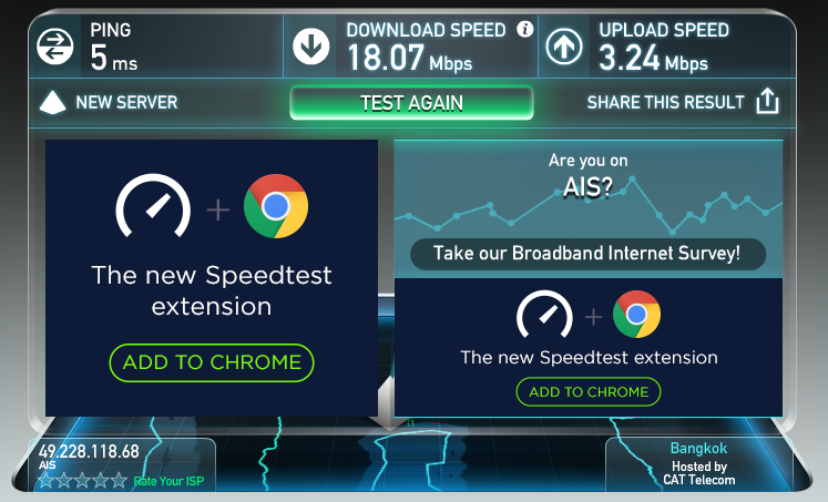 ต้องเปิดปิดกล่องเน็ตทุกๆ 2-3 วันถึงระดับความเร็วอินเตอร์เน็ตเต็มตามแพ็คเกจยังของผมคือแพ็คเกจ 500/500 ตอนที่ทดสอบนี้ปรับเป็น 1,000/300 ได้ความเร็วตามรูป อัพโหลดไม่เคยมีปัญหาเลยได้ตามความเร็ว แต่ดาวน์โห