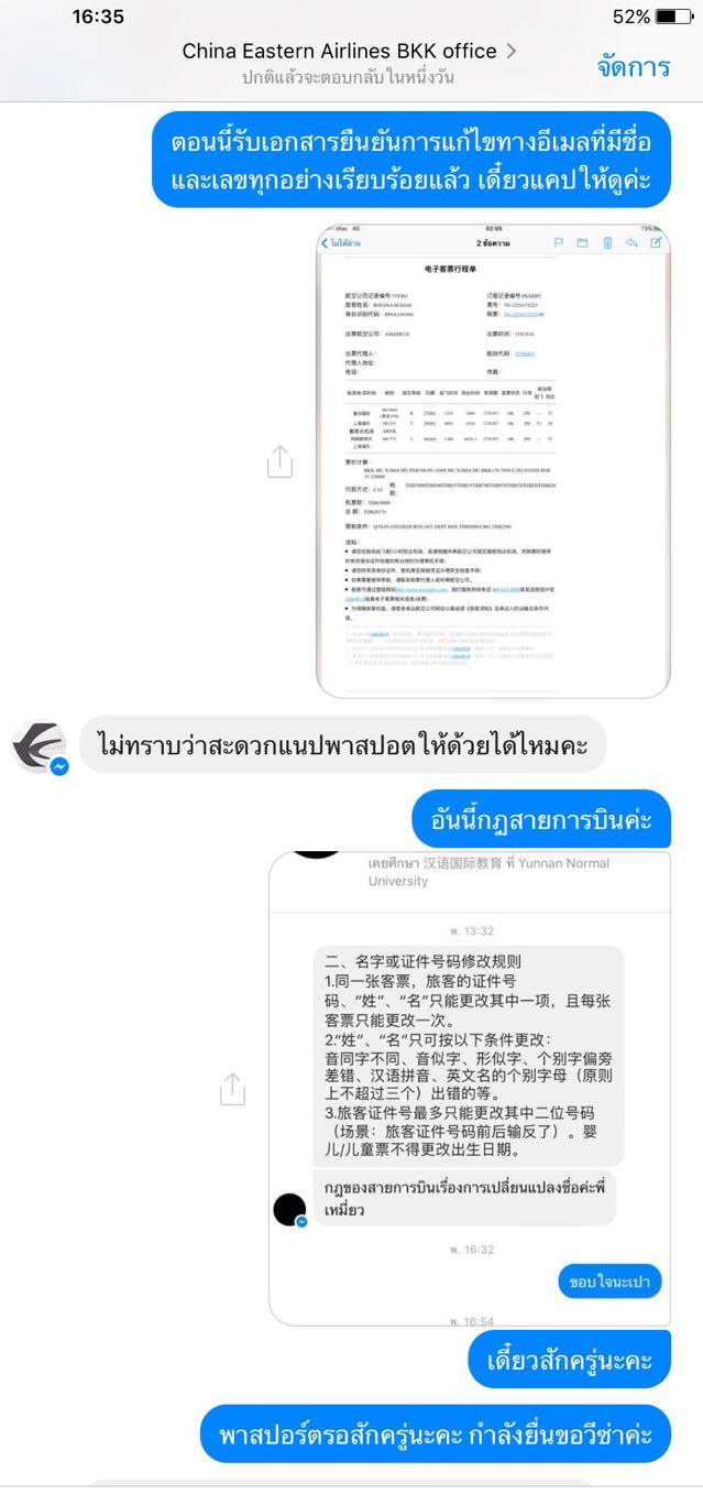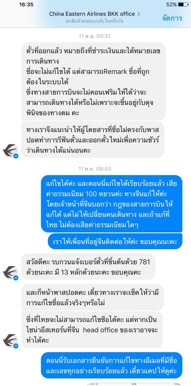 [CR] เล่าสู่กันฟัง เรื่องการแก้ไข/เปลี่ยนแปลงการสะกด ชื่อ-นามสกุล สายการบินไชน่าอีสเทิร์น แอร์ไลน์