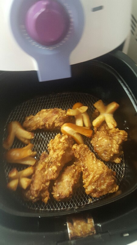เตรียมทอดไก่และไส้กรอกโดยหมักไก่ ด้วยเกลือ น้ำปลา พริกไทย จากนั้นเอาไปทอดพอสุกเอาขึ้นพักไว้และทอดไข่ดาวทิ้งไว้