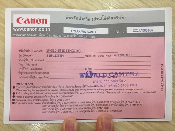 *เพิ่มเติม วันนี้ 4 มีนาคม เราไปดูกล้องต่อค่ะ แล้วก็ไปติดต่อขอเลข serial number กับทางร้านมาแล้ว แต่ยังบอกรายละเอียดอย่างอื่นไม่ได้ค่ะ