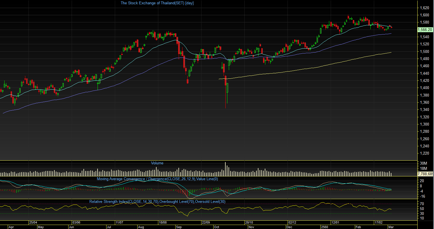 เมื่อวานศุกร์ที่ผ่านมา ดัชนี SET index เคลื่อนไหวแกว่งตัวในกรอบแคบมากๆ 1564 - 1569 จุด เนื่องจากนักลงทุนส่วนใหญ่