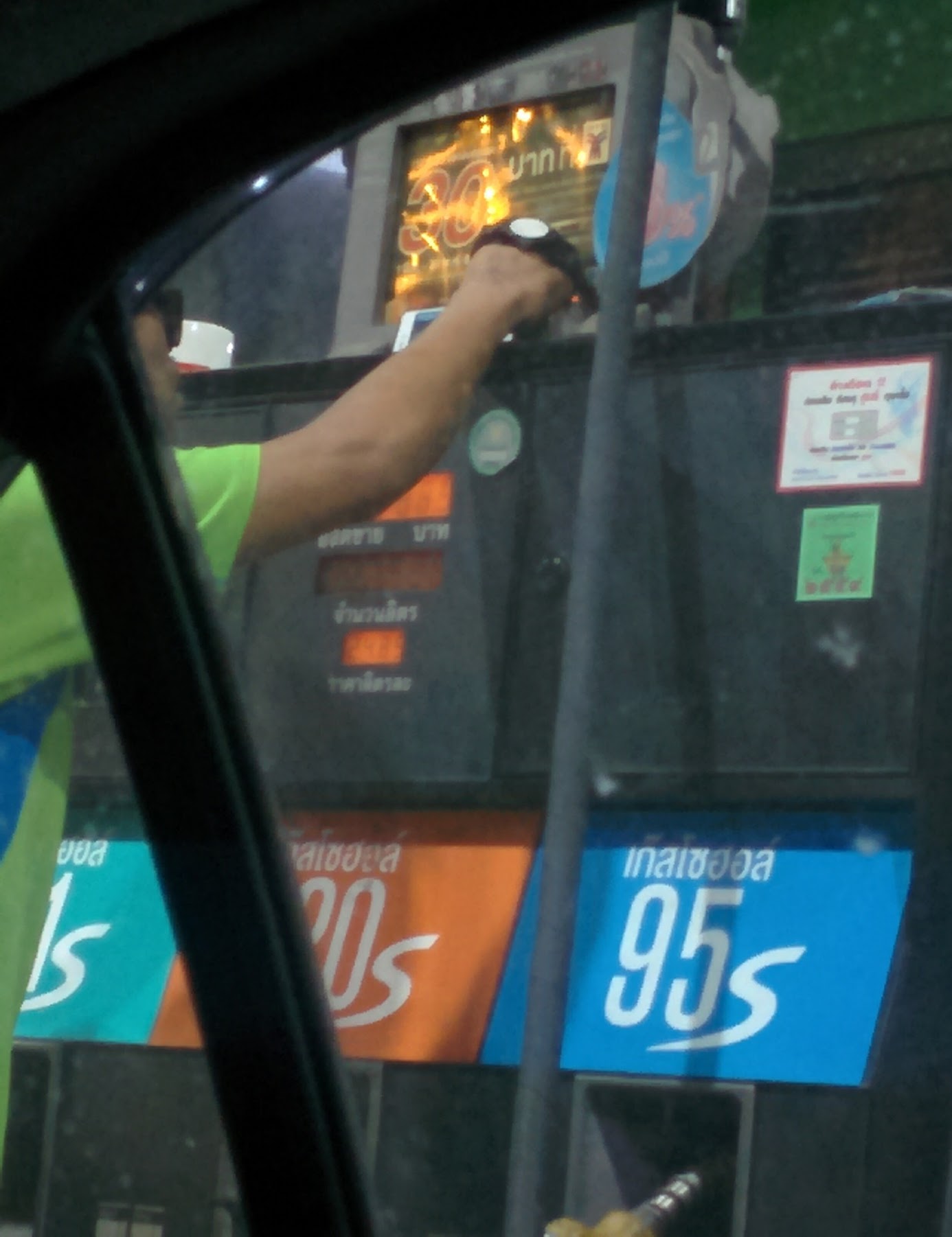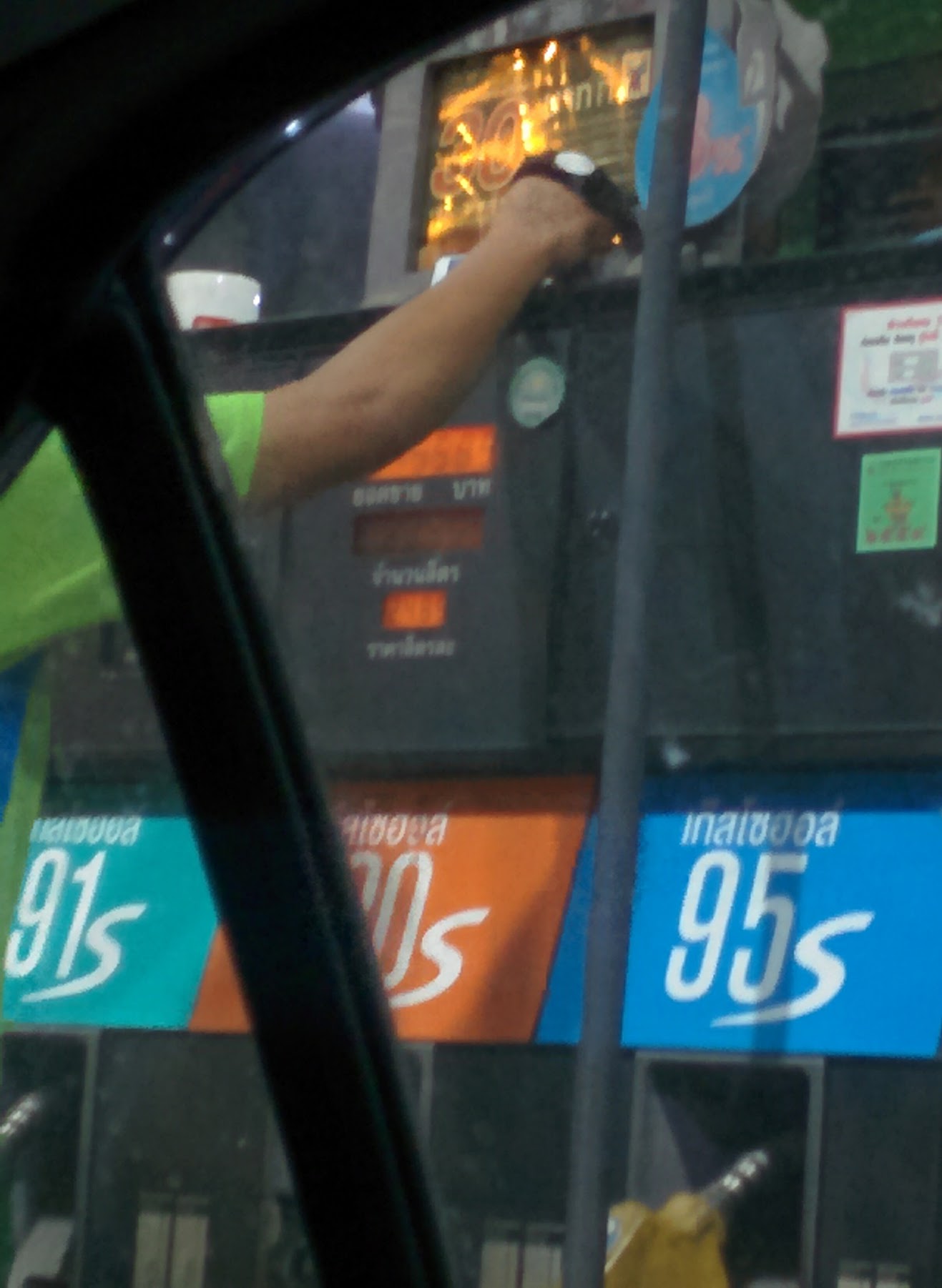 เห็นเด็กปั๊มเสียบหัวจ่าย แล้วก็เดินไปจับ ๆ อะไรไม่รู้หลังตู้ ผมก็มองอยู่ นึกว่าจะหาอะไรมาเช็ดกระจก
