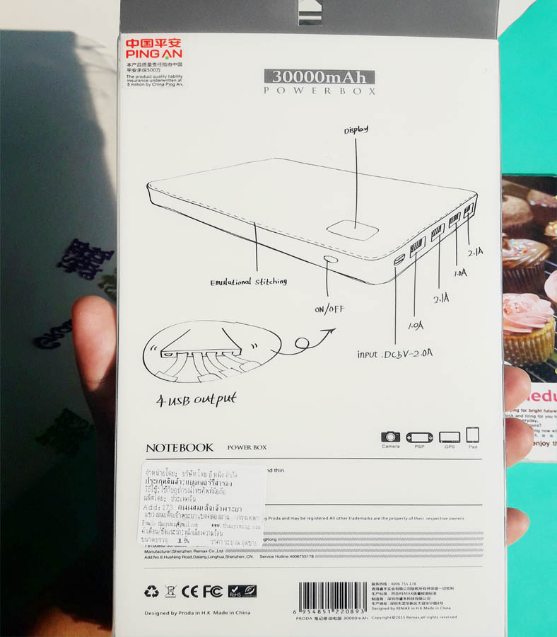 เป็นแบรนด์น้องใหม่ชื่อว่า P R O D A Powerbank Remax 30000mAh 4USB ที่ทางแบรนด์ได้ส่งมาให้รีวิว