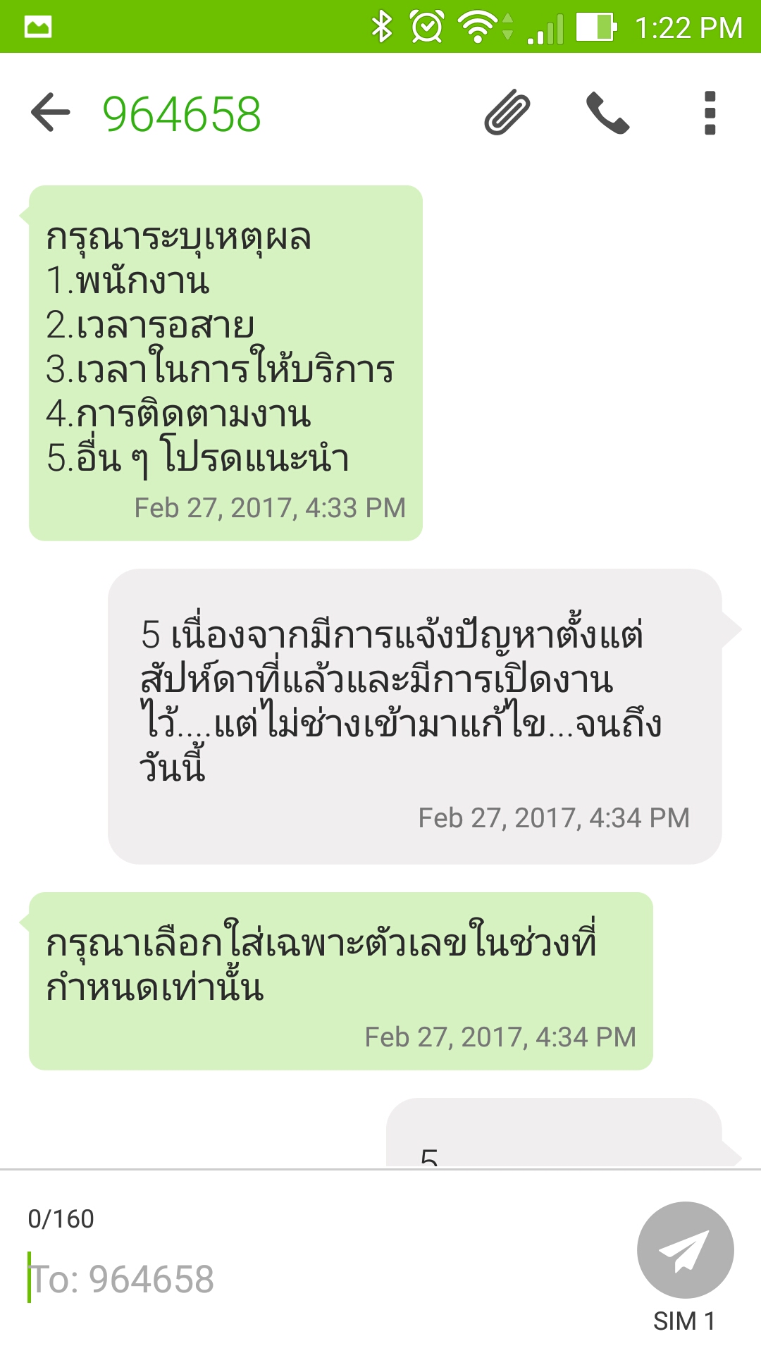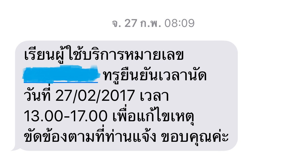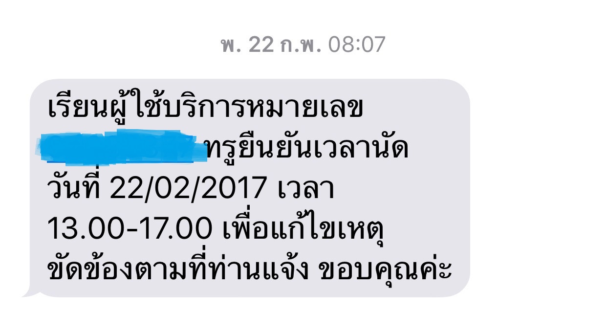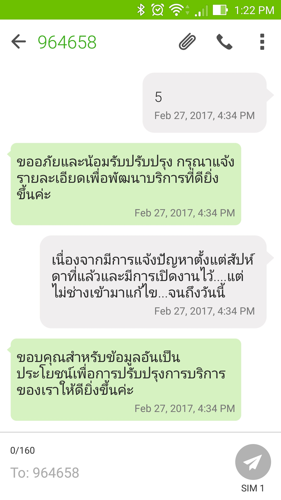 หลังจากแจ้งปัญหาเสร็จ...ก้อมีข้อความเข้ามาวันที่ 22....เราก้อรอว่าจะมีช่างโทรเข้ามานัดวัน..สำหรับเข้ามาตรวจสอบ.....ปกติไม่ค่อยได้รอนาน...แต่รอบนี้..