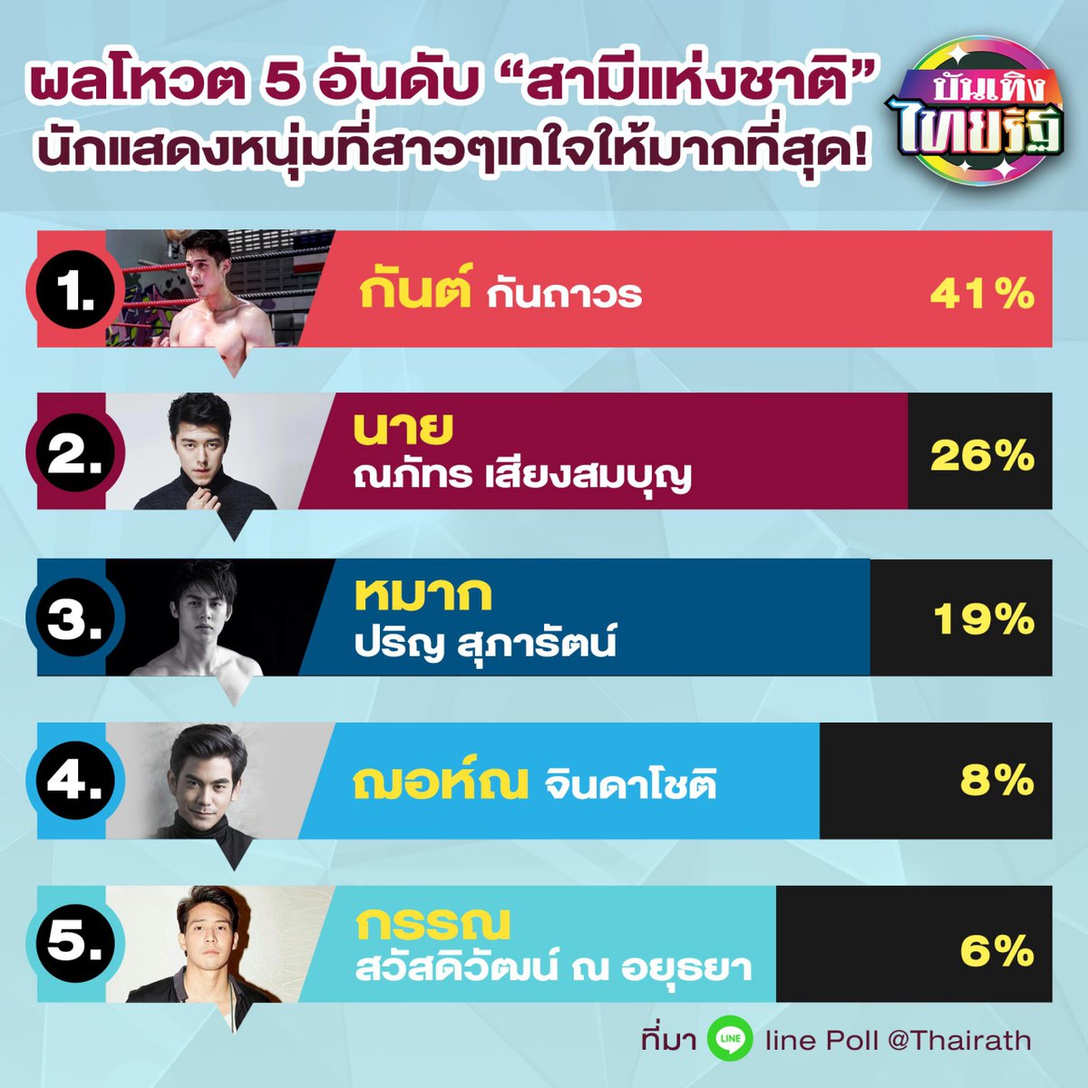 ผลโหวต5อันดับ"สามีแห่งชาติ"นักแสดงหนุ่มที่สาวๆเทให้ให้มากที่สุด