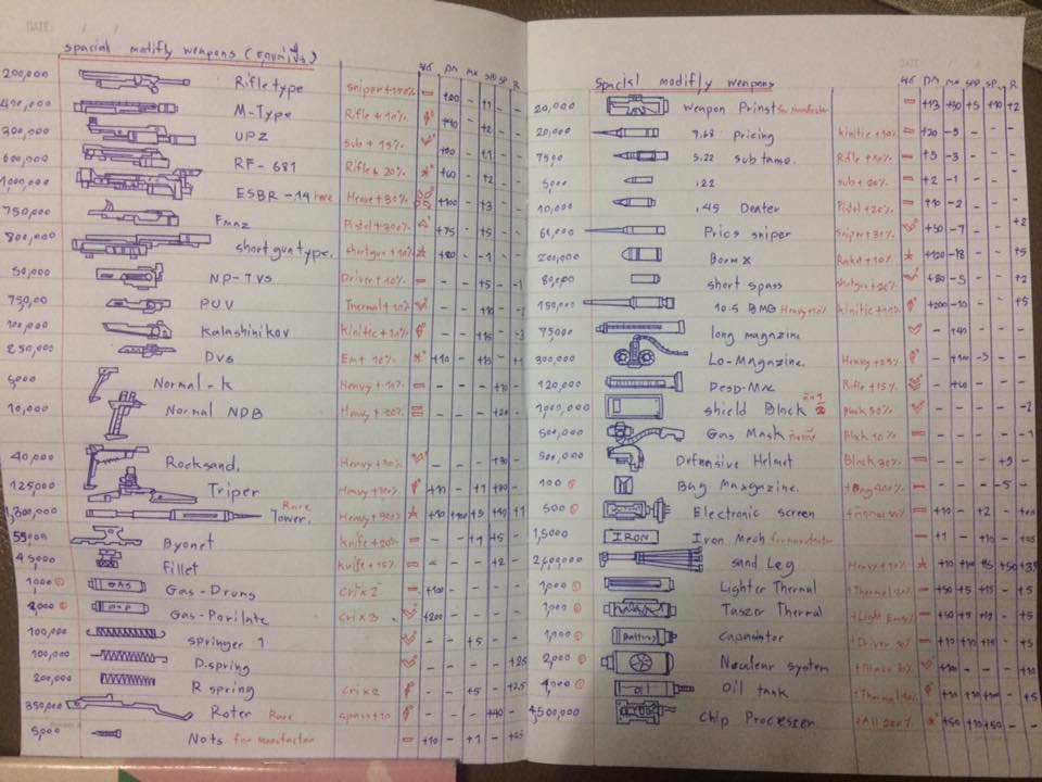 คุณมีสิทธิสร้างอาวุธเป็นของตัวเองได้ จากชิ้นส่วนที่คุณหามา หรือถอดประกอบมาจากอาวุธเดิมของคุณ แต่มีผลในน้ำหนัก ประสิทธิภาพ และความสามารถทางอาวุธ คุณมีสิทธิต่อยานพาหนะเองได้ แต่ต้องมีวัตถุดิบเช่นเดียวกับอาวุธคุณ