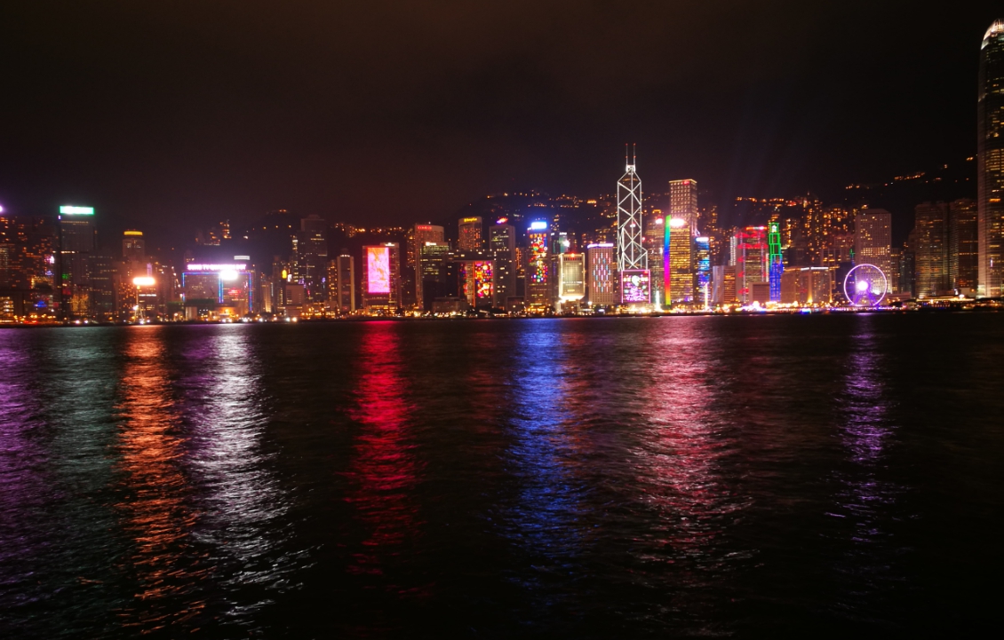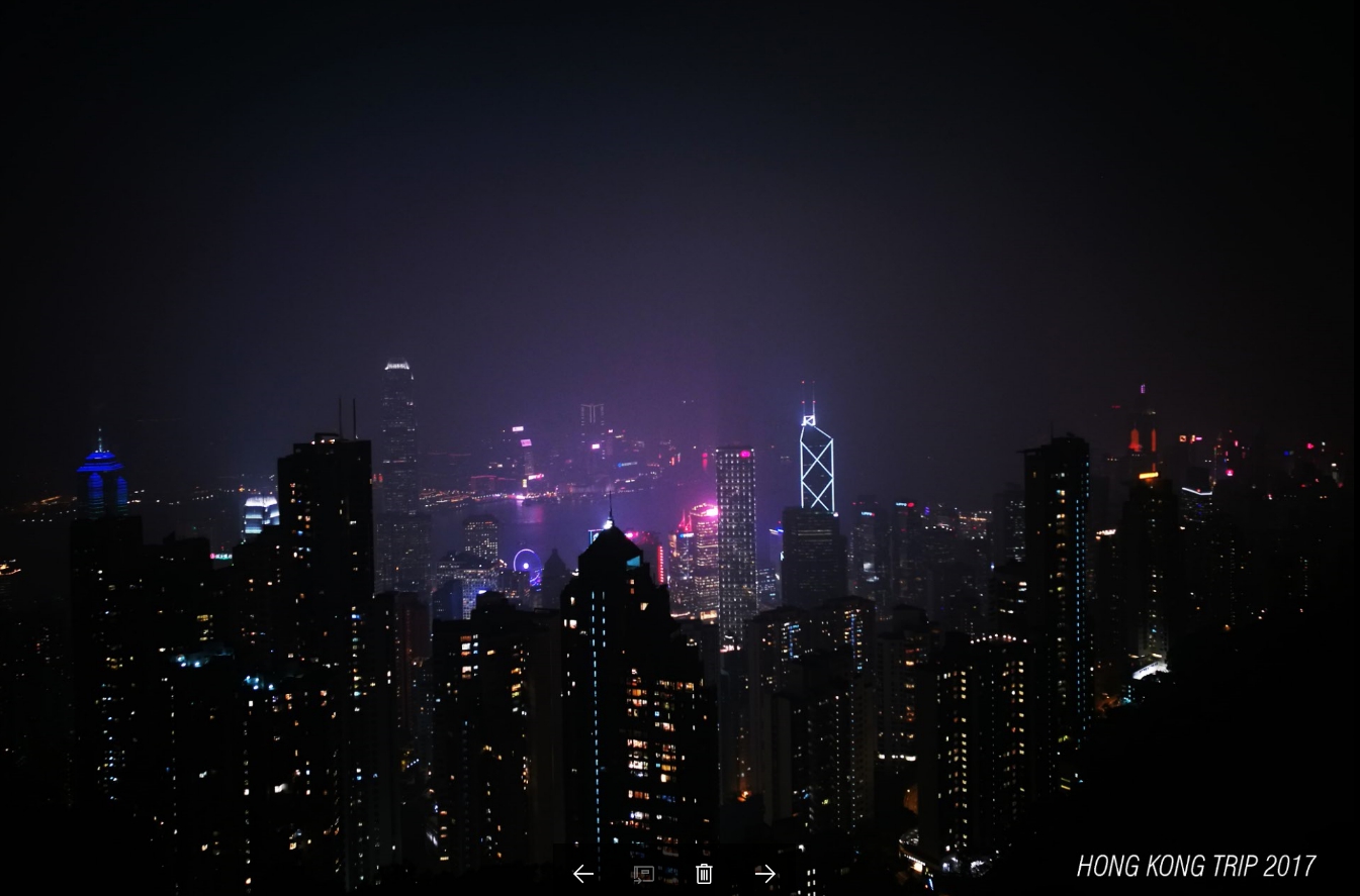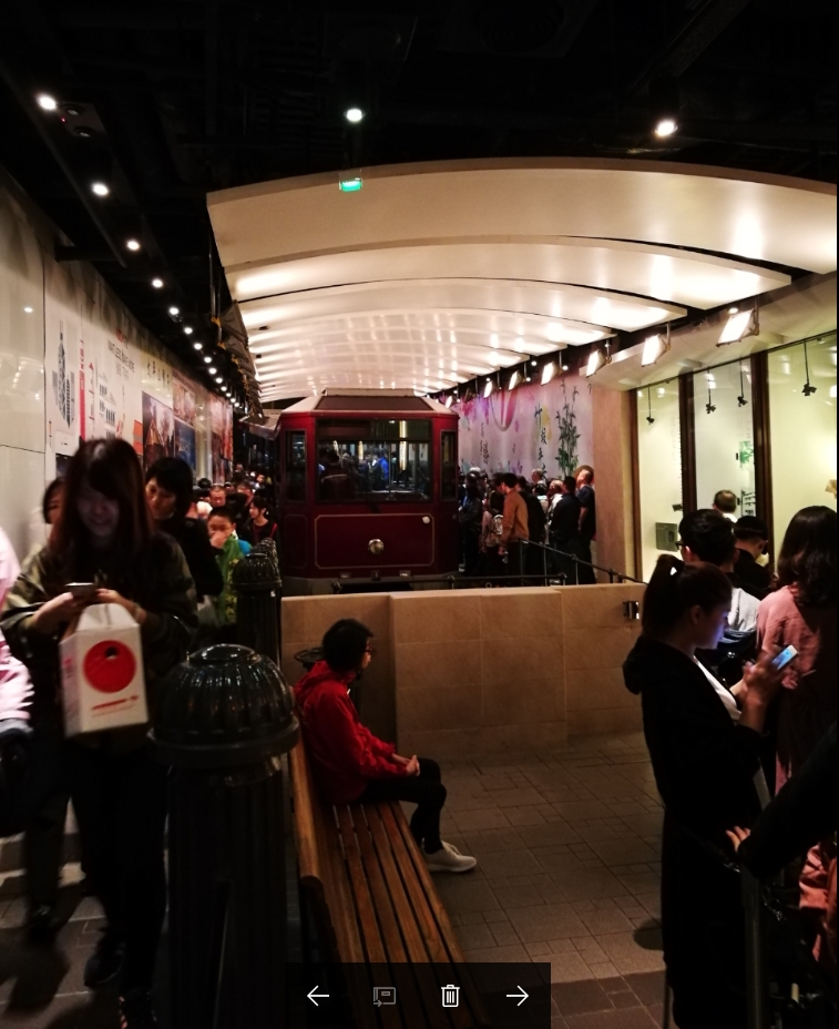 นั่งจนตกลงกันได้เราขึ้นไปบน The peak ดีกว่า ลงรถรางได็ก็เดินไปหาทางขึ้นรถไปข้างบน คนคือแน่นมาก เราเลยย้อนกลับมารอรถเมล์ ระหว่างทางขึ้นไปก็จะเห็นเมืองด้านล่างอยู่เป็นช่วงๆ แต่วันนี้หมอกลงเยอะไปหน่อย กว่าจะถึงด้านบนก็มืดพอดี เลยได้บบรยากาศแสงสีไฟมาแทน