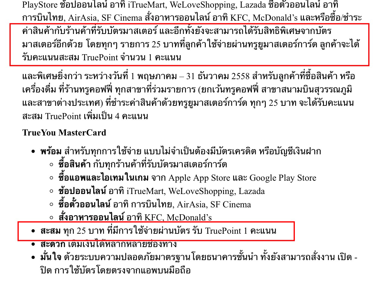TrueYou mastercard เดิมทีจะได้แต้ม 1 True point ต่อการใช้จ่ายทั่วไป 25 บาท (ที่ไม่ใช่ผลิตภัณฑ์ True)