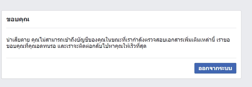 facebook เข้าไม่ได้ ให้ยืนยันเอกสาร ทำอย่างไร ผมแนบเอกสาร บัตรประกันไป แล้ว เป็นอาทิตย์ก็ยังขึ้นแบบนี้อยู่เลย จะแก้ไขอย่างไรดีครับ
