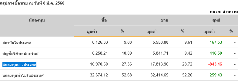 Sinthorn Summary 8/3/2560 : ต่างชาติขายสุทธิ -843.46 ลบ.