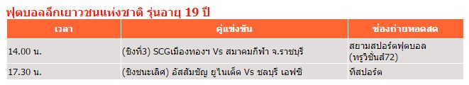 โปรแกรมฟุตบอลไทย วันที่ 9 มีนาคม 2060 ฟุตบอลลีกเยาวชนแห่งชาติ รุ่นอายุ 19 ปี