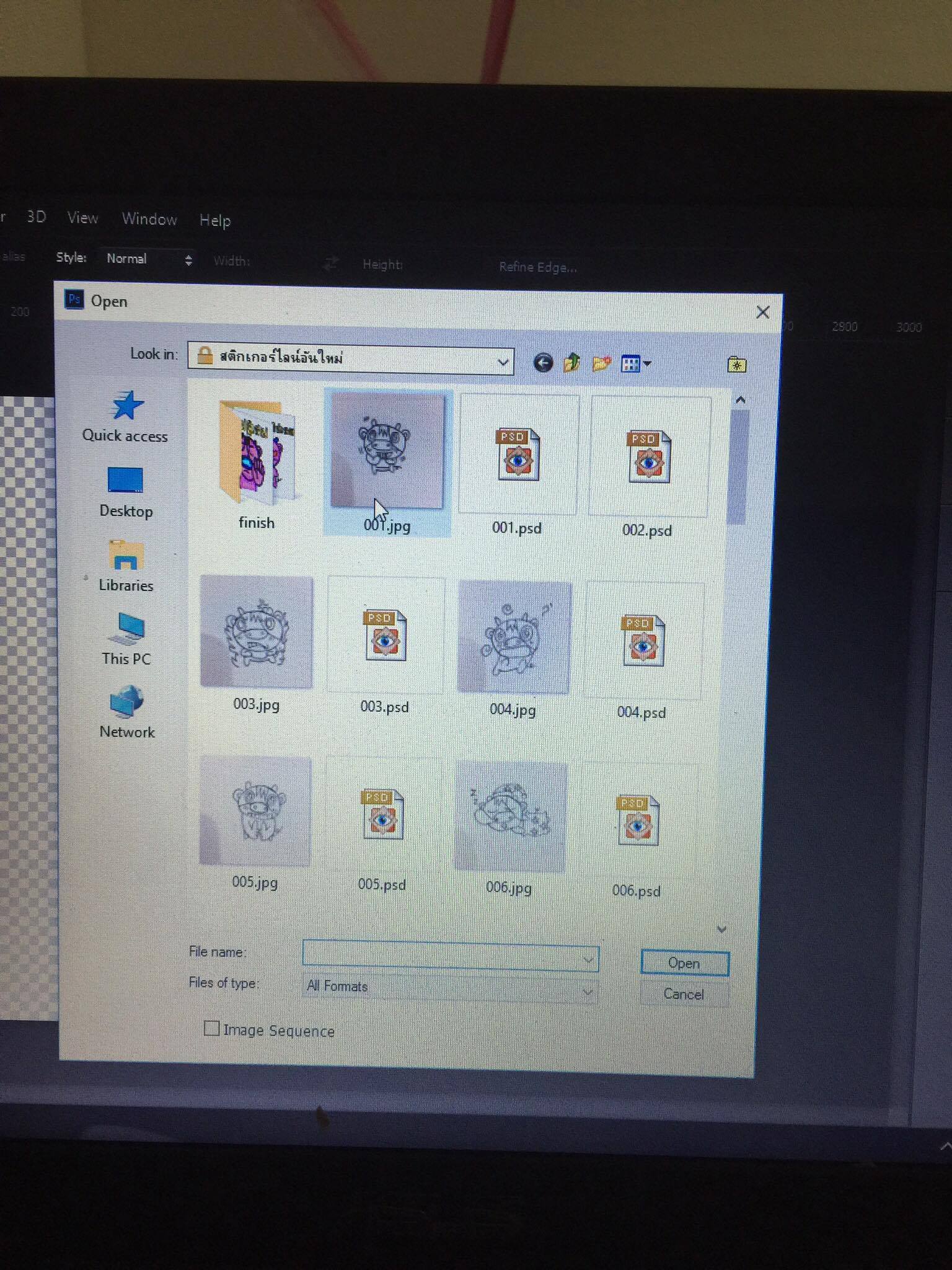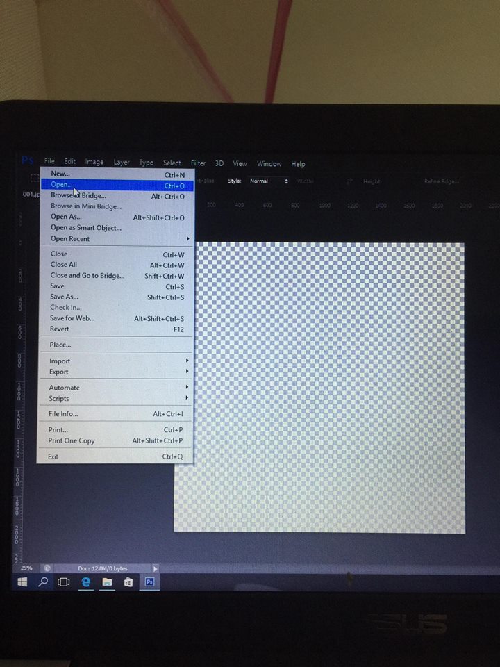 เปิดโปรแกรม photoshop คลิกเลือกคำสั่ง Open เพื่อที่จะสามารถเลือกภาพที่เราได้ทำการเตรียมไว้