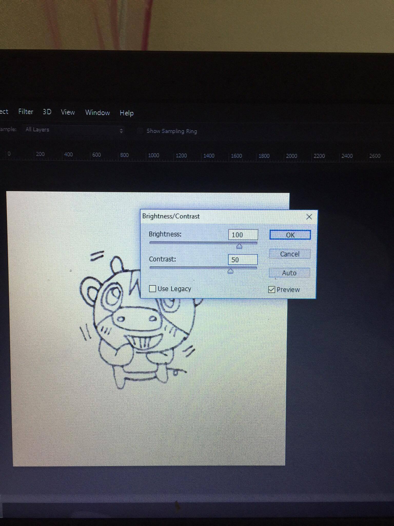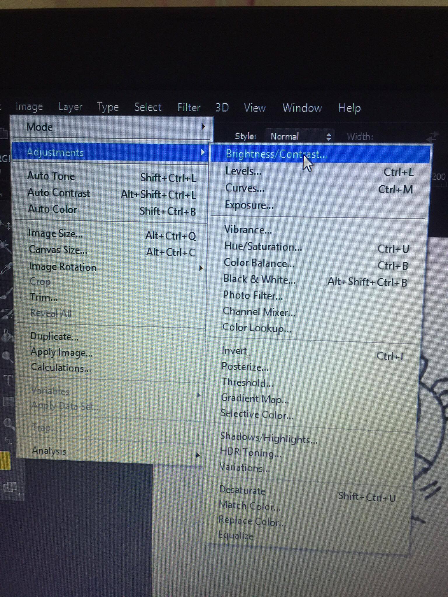 จากภาพจะสังเกตได้ว่า ตัวภาพที่เราถ่ายจาก Smartphone จะมีสีที่ค่อนข้างมืด ดังนั้นเราต้องทำการปรับแต่งภาพให้มีความสว่างมากขึ้น โดยไป เมนูบาร์ กดเลือก Image>Adjustment>Brightness/Contrast...