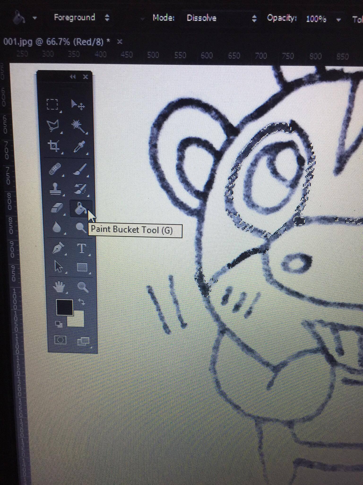วิธีแก้คือ คลิกปุ่ม Magic wand>Add to selection>นำไปคลิกที่เส้นขอบทั้งหมดของภาพจนครบเส้นรอบวง เลือกจุดตามใจชอบยิ่งคลิกมากยิ่งครอบคลุมมาก>จากนั้นคลิก Bucket tool เลือกสีดำ เพื่อที่จะเติมสีให้กับเส้นขอบของภาพที่จาง>นำ paint bucket ไปกด ตรงเส้นขอบที่ใช้ magic wand เลือกคลุมไว้เป็นอันเสร็จสิ้น