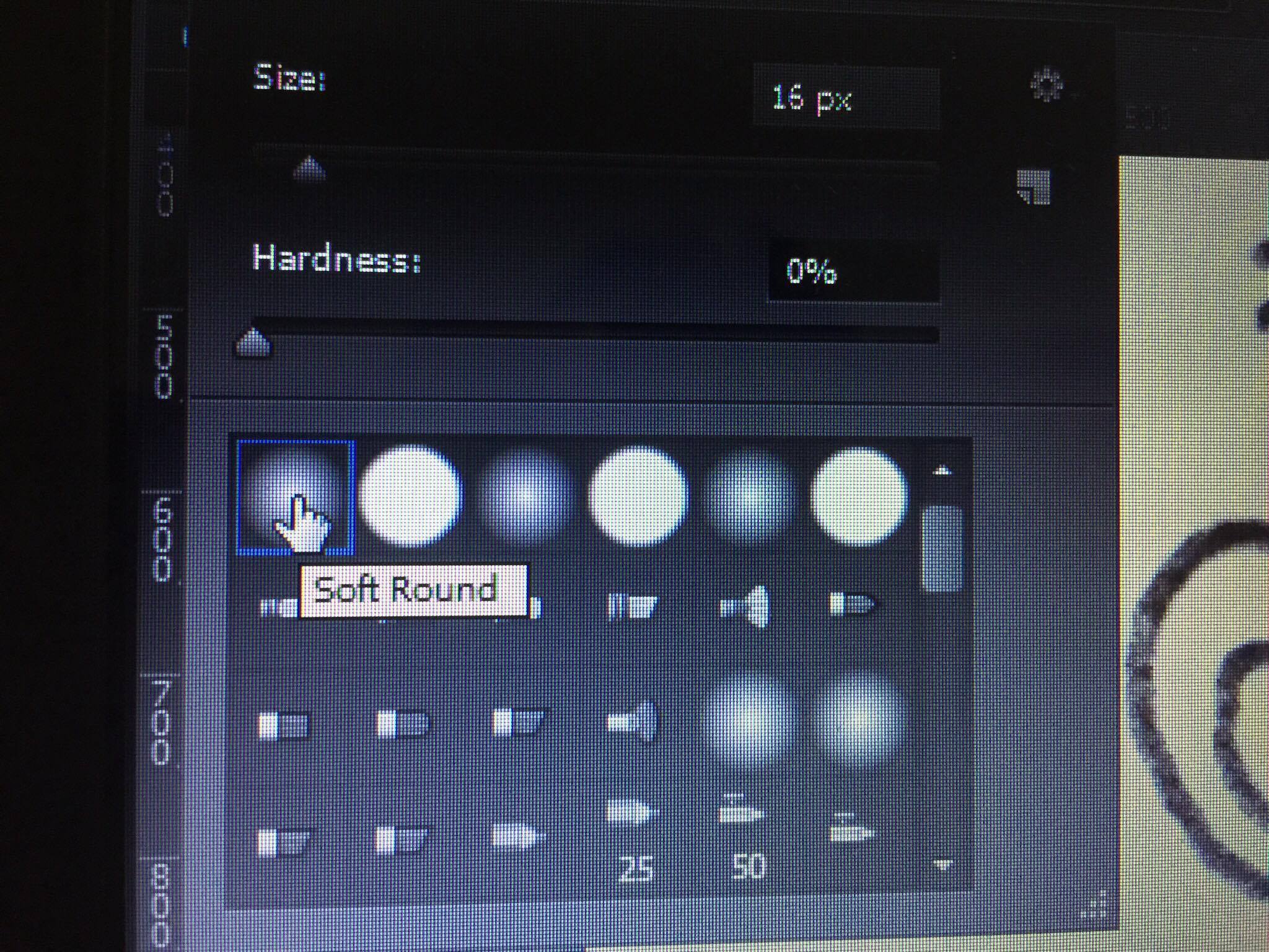 และทำการไล่สี โดยใช้สีชมพูเข้ม (RGB) โดยทำการคลิก Brush (แปรง) เลือกหัวอ่อนสุด (Soft) ปล. ตอนนี้ยังมี magic wand คลุมอยู่นะครับ หากอยากยกเลิกการคลุมให้กด Crtl+D