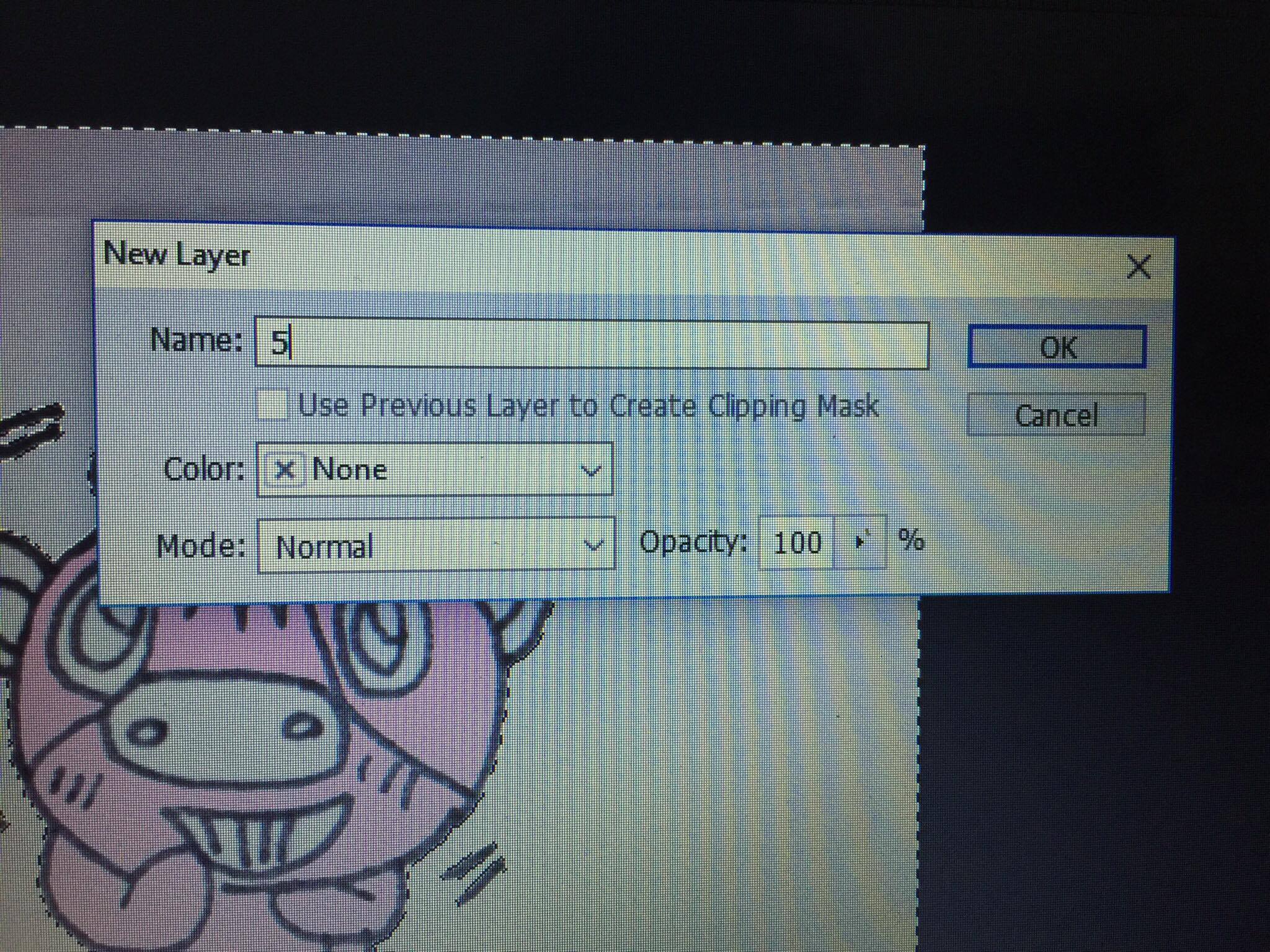 ทางไลน์ได้กำหนดให้ภาพ sticker นั้นต้องมีสกุลไฟล์เป็น .png (คือพื้นหลังโปร่งใส) ตอนนี้ภาพเรายังมีสภาพพื้นหลังเป็นสีขาว (white background) อาจนำไปเปิดจะปรากฏเป็นพื้นหลังสีขาวสี่เหลี่ยมไปด้วย แต่ถ้าเราตัดพื้นหลังออกจะมีแต่ตัวสติกเกอร์ปรากฏ วิธีการตัดภาพพื้นหลังทำได้ง่ายๆ โดยอันดับแรกให้ Double click ที่ เลเยอร์ background ก่อนจะทีหน้าต่างขึ้นมาก็กดตกลงไปเลย ถึงจะทำการตัดภาพได้ จากนั้นใช้ Magic wand เจ้าเก่า คลิกเลือกพื้นที่สีขาวว่างๆ และ กด ctrl+X ก็เรียบร้อย ภาพพื้นหลังจะโปร่งใสดังรูป (Transparent)
