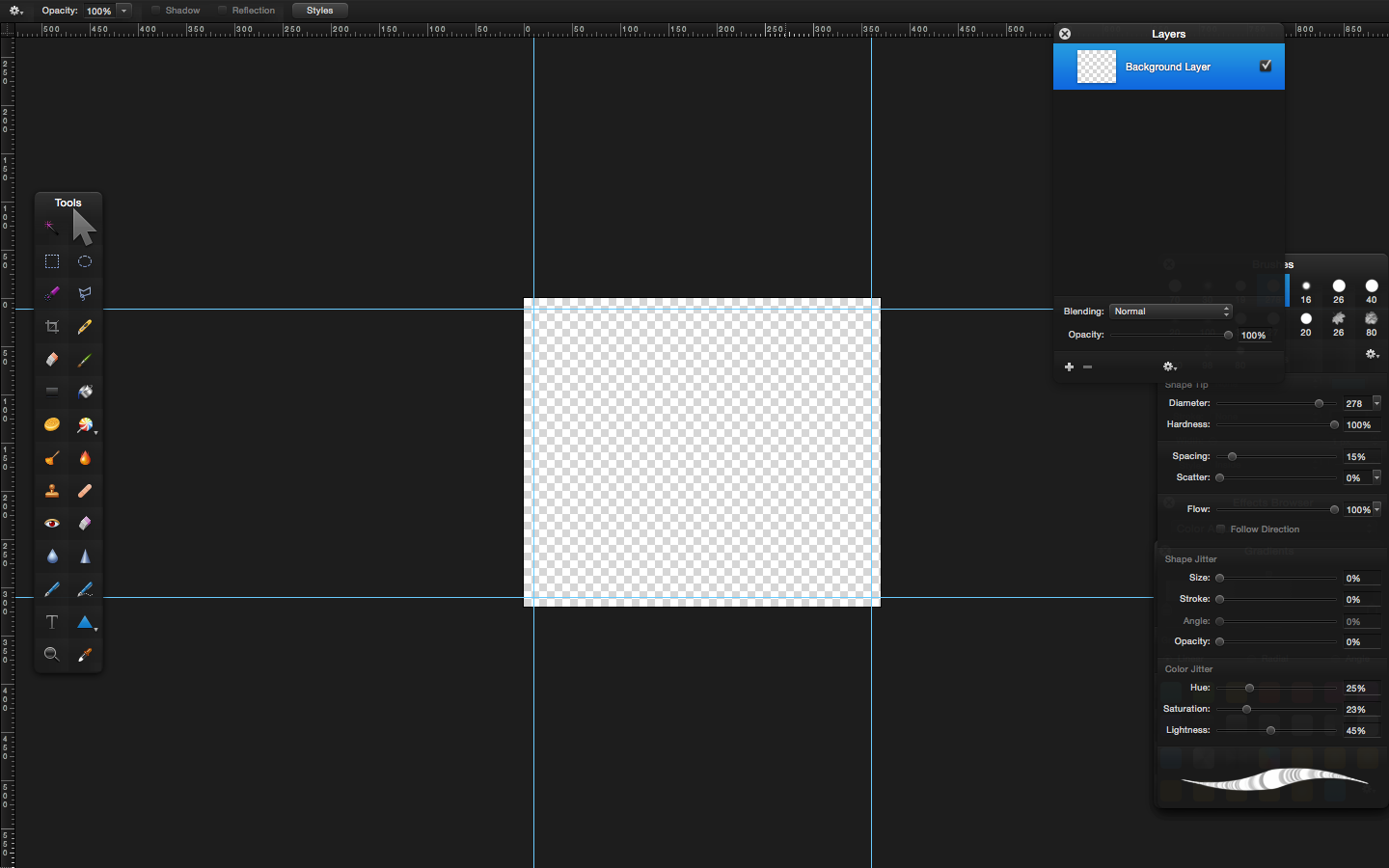 ไลน์ยังกำหนดอีกว่า (หลายขั้นตอนหลายนะ อิอิ) ให้เว้นขอบจากภาพด้านละ 10 ซม ทำได้โดยการสร้างไม้บรรทัด กด ctrl+R ลากจากด้านซ้าย ขวา บน ล่าง ให้ล้อมรูปภาพ โดยด้านซ้ายคือ 10 ขวาคือ ขวา 360 (เอา 10 ลบ 370 เพราะกว้าง 370) บน 10 ล่าง 310 (10 ลบ 320) ดังภาพ จากนั้นนำภาพที่เราทำก่อนหน้านี้ โดยกด crtl+A เลือกทั้งหมด และ crtl+C เพื่อคัดลอกรูป (อย่าลืมเลือก merge layer (การรวมเลเยอร์ภาพทั้งหมดเป็นอันเดียวกัน) ทั้งหมดไม่งั้นจะเลือกไม่ได้ ) และนำมาวางในกรอบที่เราวางไว้โดยคลิก Ctrl+V ปรับขนาดให้อยู่ในกรอบที่กำหนด