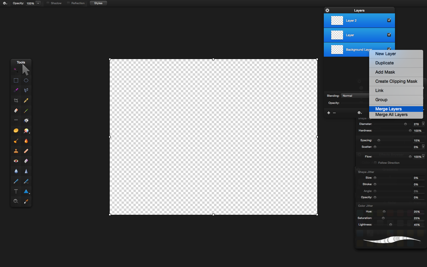 ตัวอย่างการเลือก merge layer โดยการลากคลุมดำและคลิกขวาเลือก Merge layer