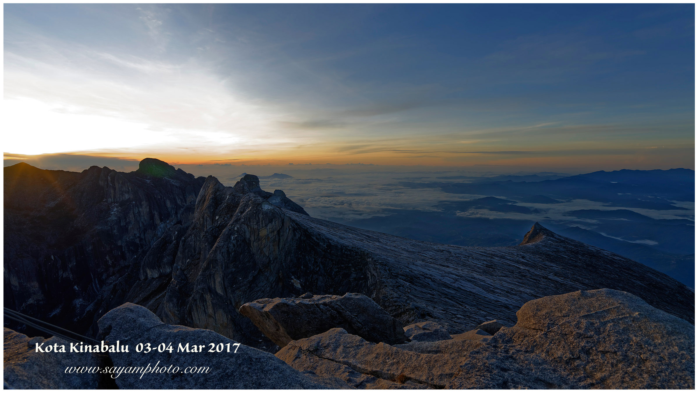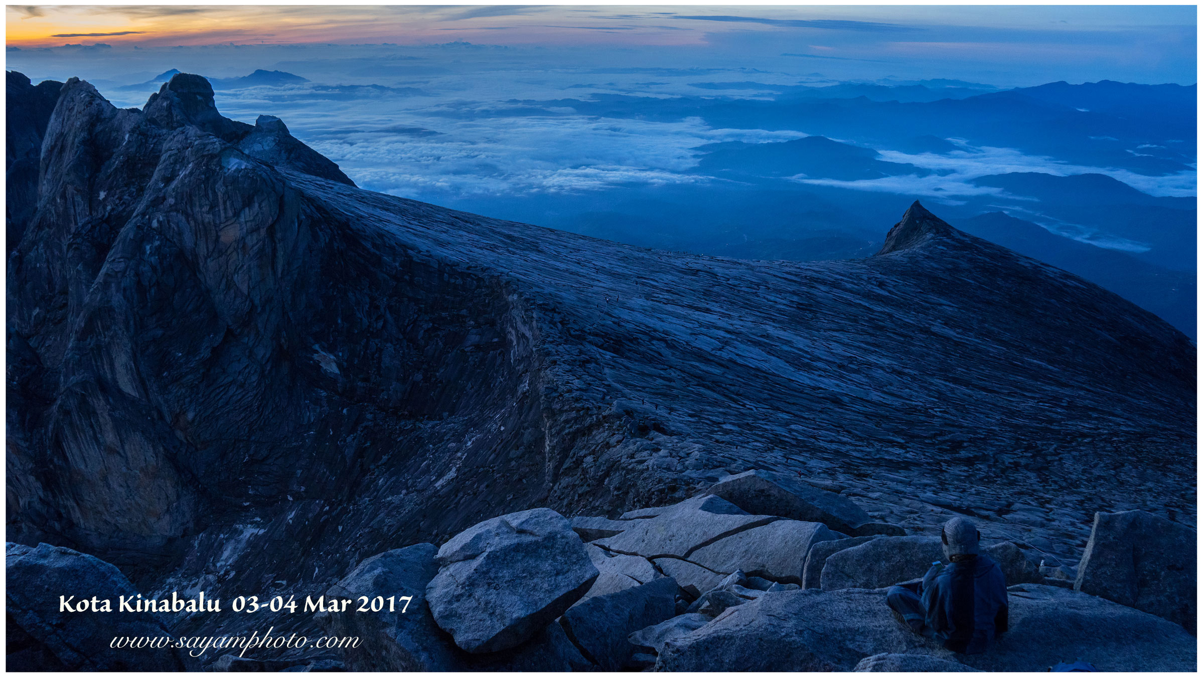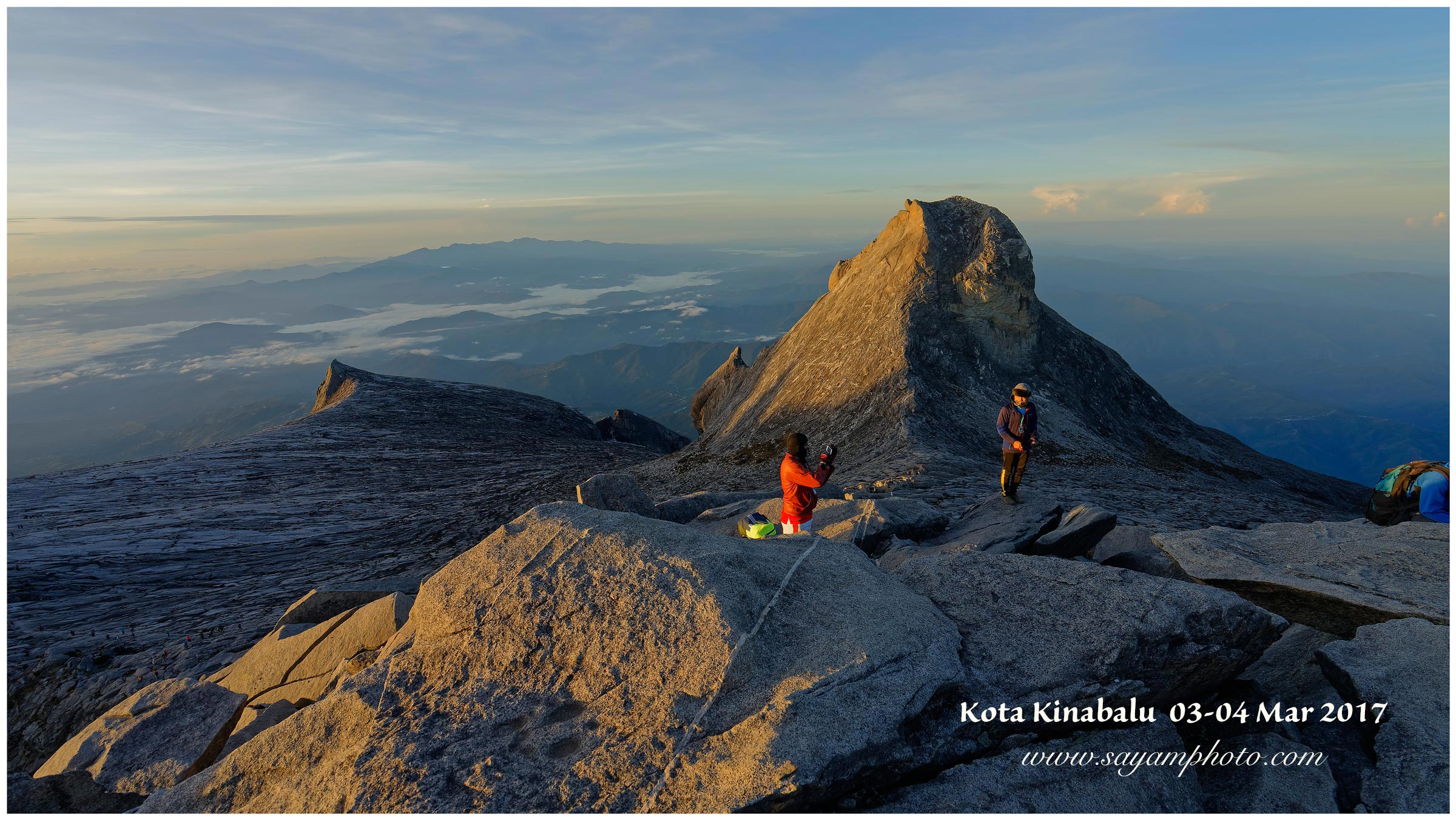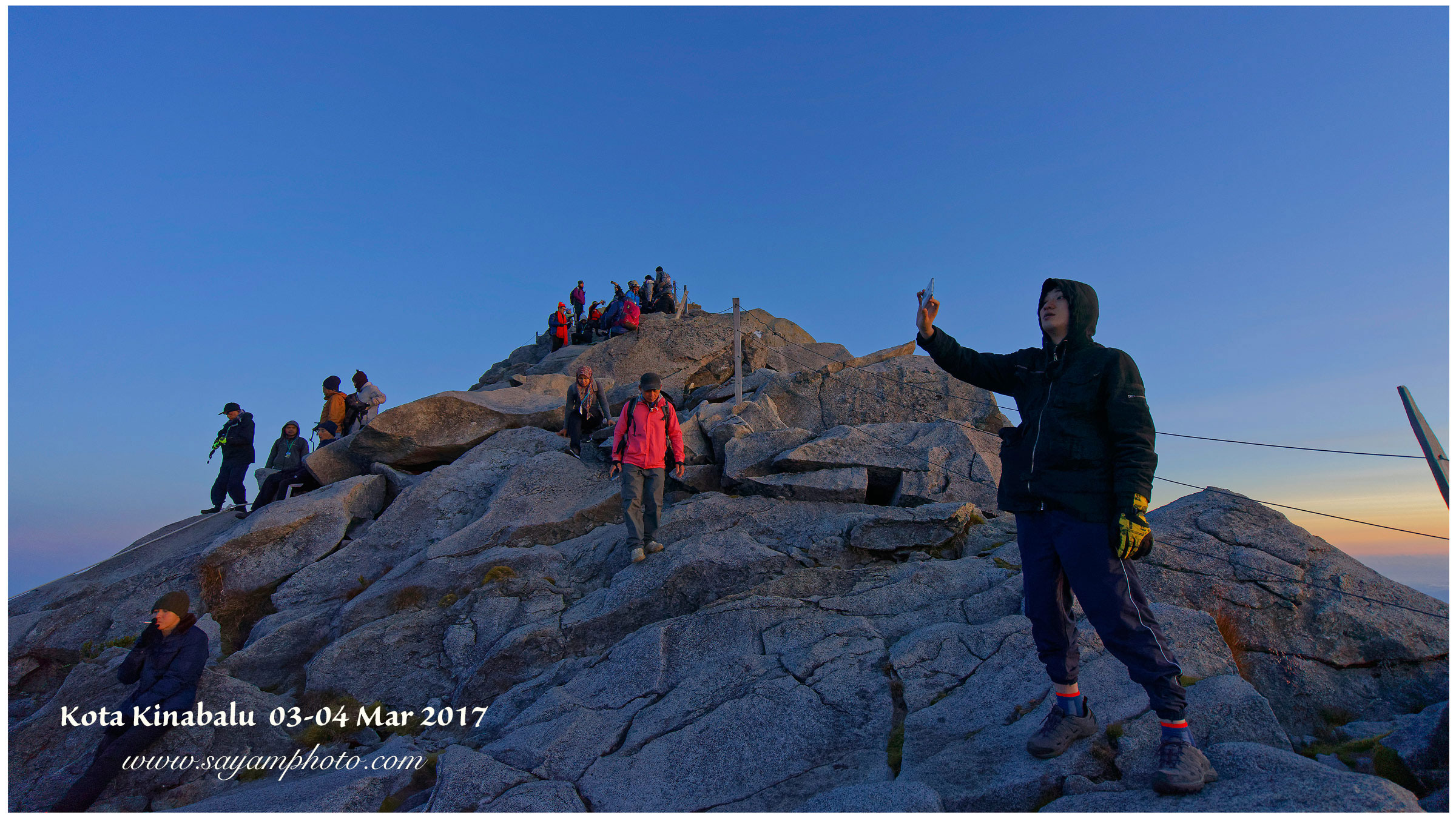 ผมไปถึงยอดของ Low’s peak ได้ก่อนพระอาทิตย์ขึ้นครับ มันมืดมาก กล้องหาโฟกัสไม่เจอ ต้องโฟกัสมือ (Sony A7R+ 24-70, A7II + 16-35) ผมตัดสินใจนั่งรอทีมก่อนยังไม่ปีนขึ้นยอด นั่งรออยู่ในจุดที่ห่างจากยอดห้าหกเมตร จนแสงมาก็กดไปหลายรูป ในที่สุดทีมก็มาถึงกับไกด์ครับ จะรออะไรล่ะ ถ่ายรูปหมู เอ้ยหมู่กัน หลังจากนั้นใครคิดอะไรได้ก็ถ่ายกันไปเยอะล่ะครับ จนไกด์บอกว่าเราต้องเริ่มลงตอน 7:30 ครับ