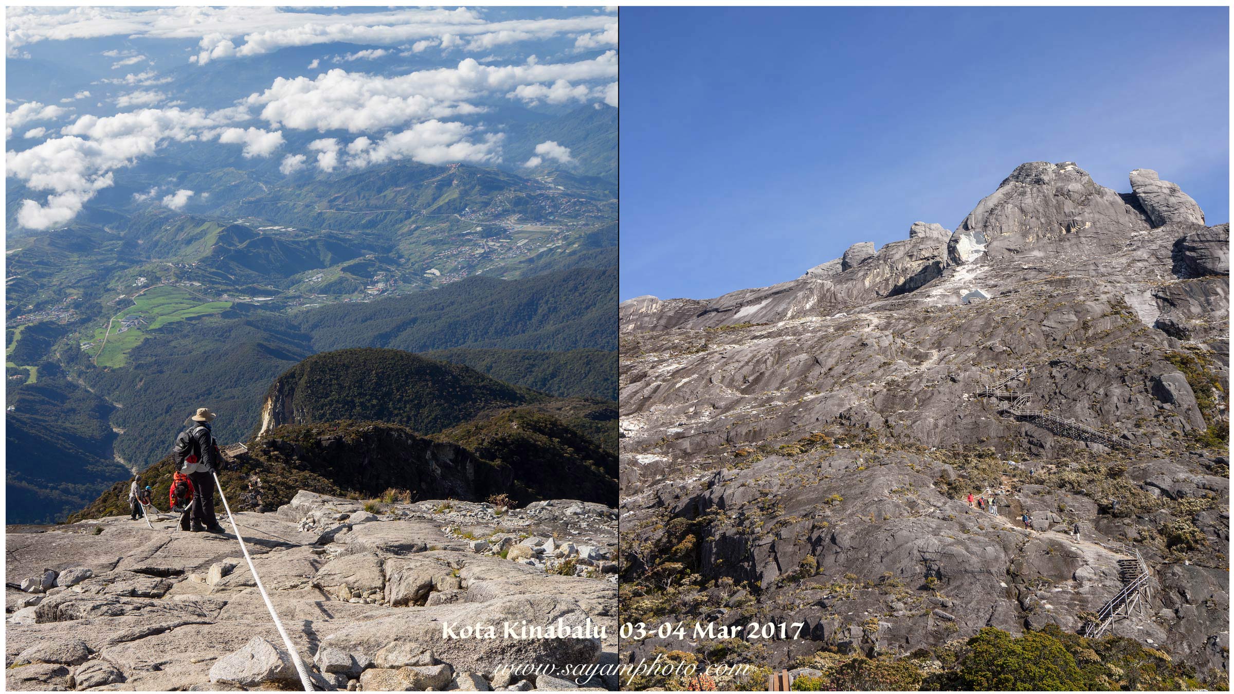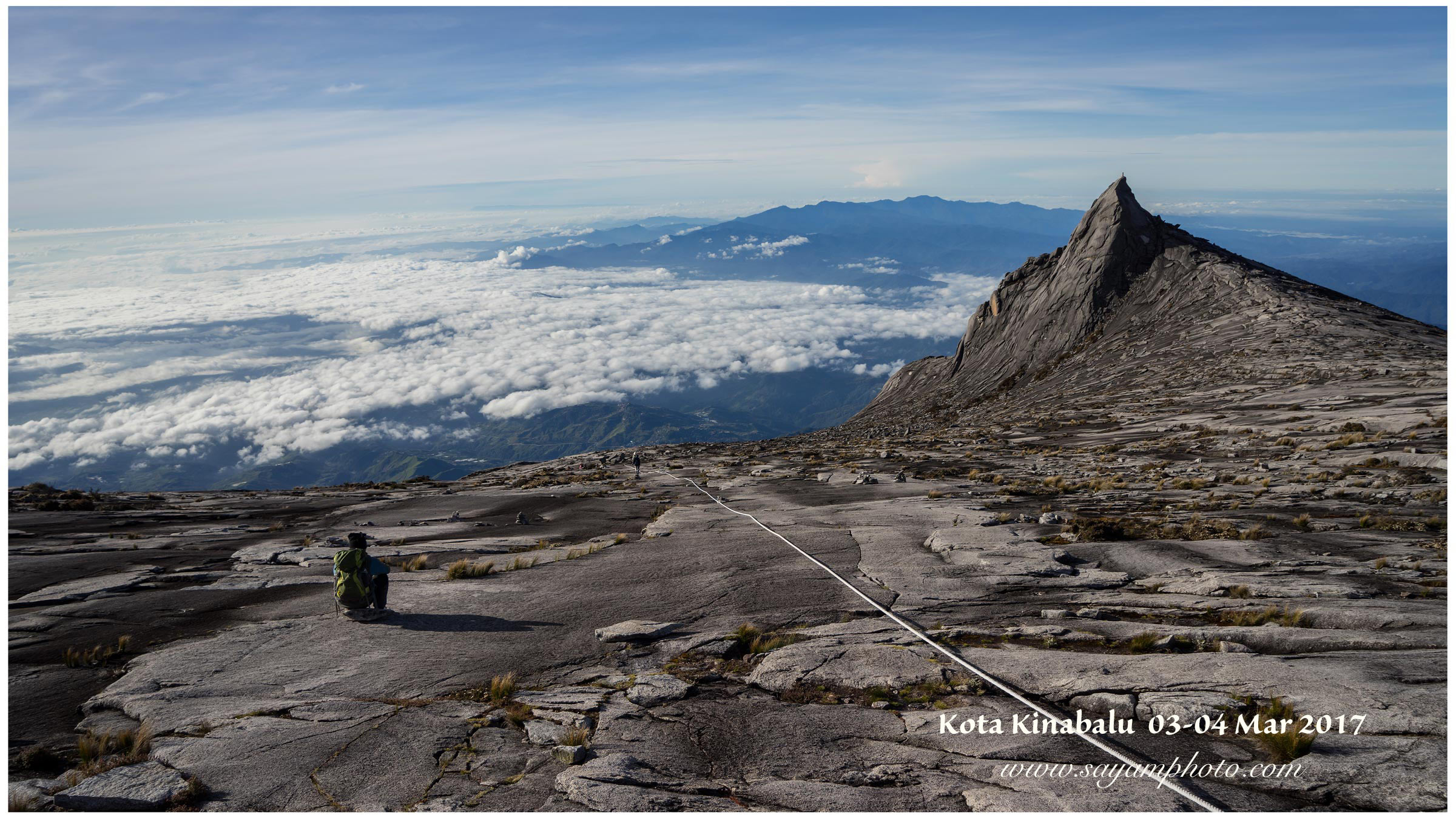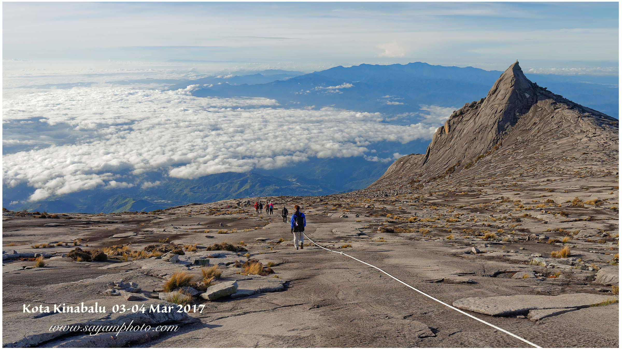 ออกเดินไปทางด้านหลังของ Laban Rata เดินขึ้นบันไดไม้ไปครับ น่าจะประมาณตึกห้าหกชั้นได้เรียงๆกันไป จนผ่านประตูรั้ว ก็เริ่มมีทางบันไดดินไปเรื่อยๆปีนเชือกนิดๆหน่อยๆ จนถึงจุด check point “Sayat Sayat” ชื่อนี้สำคัญครับ เมื่อไหร่ที่คุณผ่าน Sayat Sayat มาแล้ว ก็คือคุณมาเดินบนลานหินของ Mt. Kinabalu แล้ว ที่เหลือก็แค่เดินไปให้ถึง Low’s Peak ที่อยู่ทางซ้ายมือด้านหน้าไกลๆ (ผ่าน South peak ไป) ข้อแนะนำคือ บนลานหินคุณไม่มีเหวให้ตกครับ อย่าไปจับเชือกอีก เชือกเส้นใหญ่และหนัก จะทำให้เหนื่อย เดินก้าวสั้นๆช้าๆแต่อย่าหยุด “Slow and steady” ด้วยการเดินแบบนี้ผมแทบจะไม่ต้องหยุดเพราะเหนื่อย บนลานหินเลยครับ ไปยาวๆ อย่าลืมจิบน้ำเป็นระยะๆ
