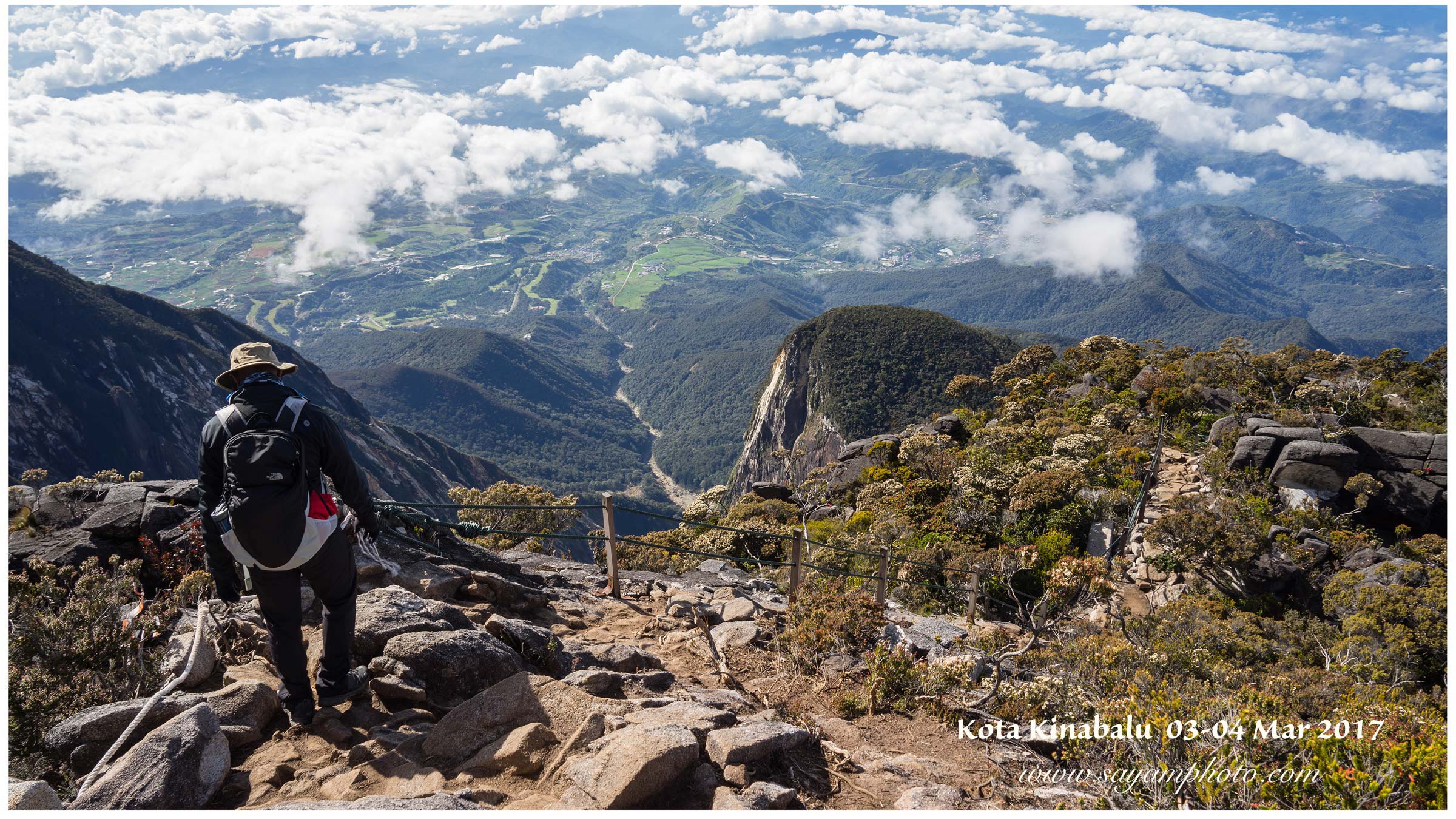 ในหนังพอตัวเอกปีนถึงยอดเขา ไชโย แล้วก็จบ...... ชีวิตจริงป่าวครับ ของจริงมันตอนลงตะหาก แรงก็เอาไปปีนขึ้นหมดละ ยืนนิ่งๆ มองไปทางที่ขึ้นมา “เราต้องกลับแล้วล่ะ ลงไปทางเดิม” ไกด์บอก “ตามผมมา” ไกด์หาไลน์ในการลงให้ พร้อมกับเดินตัวปลิวกระโดดเด้งดึ๋งๆไปตามก้อนหิน นึกถึงกังฟูแพนด้าเลย ส่วนพวกเราก็ทั้งปีนทั้งตะกุยตะกายผ่านก้อนหินใหญ่ทีละก้อนๆ จนลงมาถึงลานหินครับ ค่อยๆเดินลงๆผ่าน Sayat Sayat ลงมา ขาลงจะมีจุดน่ากลัวจุดนึงครับ ประมาณ 50 เมตร ที่ต้องโหนเชือกลง เพราะมันชันมาก แต่ระหว่างทางชันๆจะมีเจ้าหน้าที่อุทยานในชุดลายพราง ยืนคุมอยู่ทุกๆ ห้าถึงสิบเมตรครับ อุ่นใจได้เยอะเลย