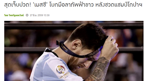 เมสซี ไอดอลของผมเป็นคนยิงจุดโทษคนแรกของฝั่งอาร์เจนตินา และยิงพลาดข้ามคานไปอย่างไม่ได้ลุ้น ซึ่งหลังจากนั้นเจ้าตัวก็อยู่ในอาการที่ผิดหวังอย่างชัดเจน หลังจากการดวลจุดโทษจบลง ทีม "ฟ้า-ขาว" พ่ายในการดวลจุดโทษต่อ ชิลี 4-2 เมสซีก็เดินไปนั่งซึมอยู่คนเดียวที่ซุ้มม้านั่งสำรองด้วยสีหน้าที่เคร่งเครียดอย่างเห็นได้ชัด