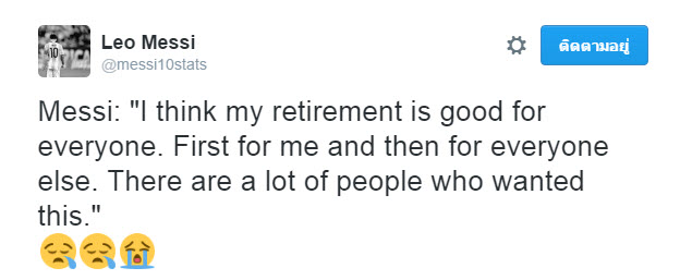 และ... สิ่งที่ทำให้ผมช็อคก็เกิดขึ้น เมื่อเมสซีออกมาโพส Twitter ว่า