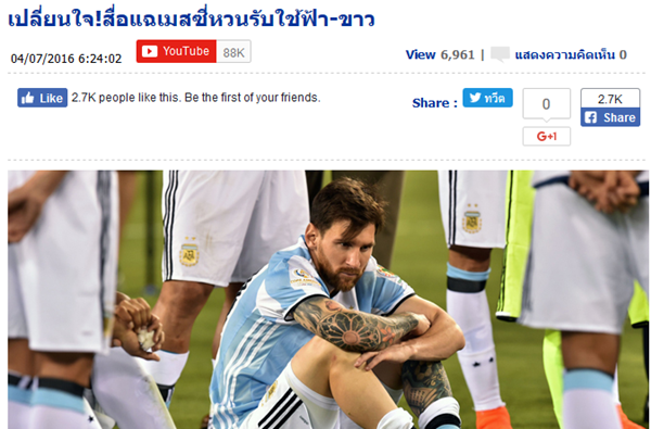 ชีวิตคนเราหากจะมีไอดอลซักคนสองคนไว้ในใจมันก็ไม่ใช่เรื่องแปลก ยิ่งเมสซีเป็นนักเตะระดับสูงสุดแล้วยิ่งทำให้ผมมีกำลังใจในการใช้ชีวิตยิ่งขึ้น... แต่แล้วในค่ำคืนวันที่ 26 มิถุนายน 2559 ทุกสิ่งทุกอย่างก็เปลี่ยนไปในรอบชิงชนะเลิศ "โคปา อเมริกา 2016"