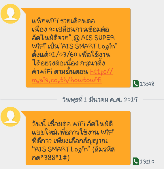 ข้อความดังกล่าวนี้รวมถึง Wifi ฟรีที่ได้รับพร้อมโปรรายเดือนด้วยหรือเปล่าคะ ใช้โปร Max Speed อยู่มีฟรี Wifi ตอนนี้มัน Auto เข้า AIS Super Wifi อยู่ค่ะยังไม่ได้เปลี่ยน เห็นใช้คำว่า Wifi รายเดือนต่อเนื่อง เลยไม่แน่ใจ