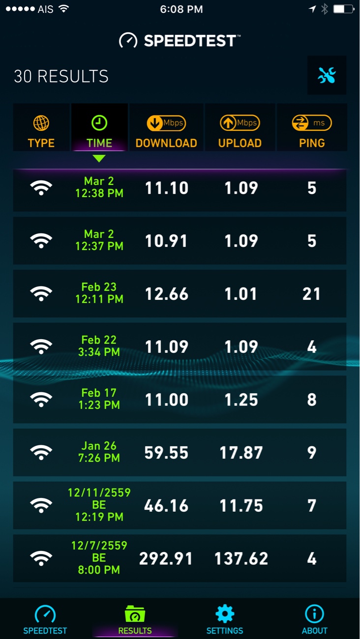 ปรกติเป็นคนชอบใช้ WI-FI ของ AIS และก็ชอบเช็คความแรงเป็นประจำ แต่ว่าตั้งแต่ขึ้นปีใหม่มาแทบไม่เคยเห็นความเร็วของสัญญาน WI - FI อีกเลย ไม่ทราบว่าผมผิดพลาดตรงส่วนไหน