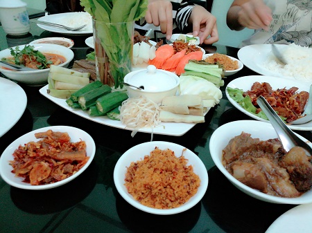 อาหารที่นี้จะมีผักและน้ำพริกเป็นเครื่องเคียงบนโต๊ะ ขอบอกคนที่ไม่กินเผ็ดต้องลองไม่งั้นคุณจะไม่สามารถรับรู้ถึงความกลมกล่อมเข้ากั๊นเข้ากันถึงจะมีรสเผ็ดเล็กๆ แต่อาหร่อยมากมาย ข้อนี้ขอยืนยันจากสาวสวยเรื่องเยอะที่กินเผ็ดไม่ได้เลย 5555