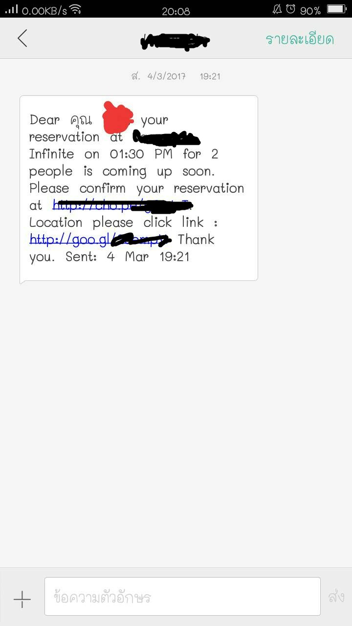 เกือบถึงวันที่เราจะไปทานทางร้านก็ส่งข้อความมาเพื่อให้เราคลิกเข้าไปยืนยันว่าเราจะมาทานจริงๆ