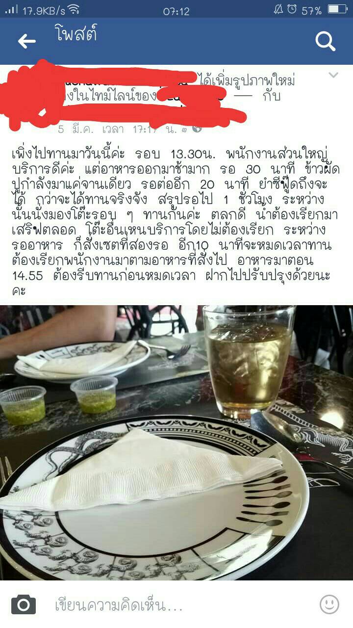 ตอนนั้นเราคุยกับแฟนเราว่า การจัดการเรื่องการเสริฟอาหารเค้าไม่ค่อยดีเท่าที่ควร เราเลยจะไปแสดงความเห็นในเพจร้าน เพื่อให้เค้าปรับปรุงเรื่องนี้