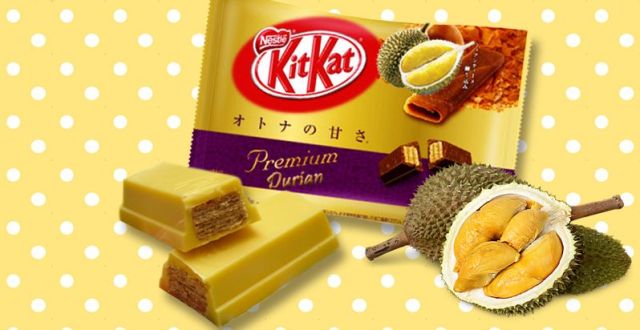 “คิทแคท รสทุเรียน” น่าจะเป็นของฝากยอดนิยมแบบเดียวกับคิทแคทของญี่ปุ่น ที่มีรสชาติพิเศษหลากหลายตามพื้นที่แต่ละภูมิภาคและฤดูกาลมากกว่า 300 รส ทั้งรสยอดนิยมอย่างชาเขียว, ถั่วแดง ,ซากุระ และยังมีรสแปลกๆ เช่น รสเหล้าสาเก รสแอปเปิล รสฟักทอง
