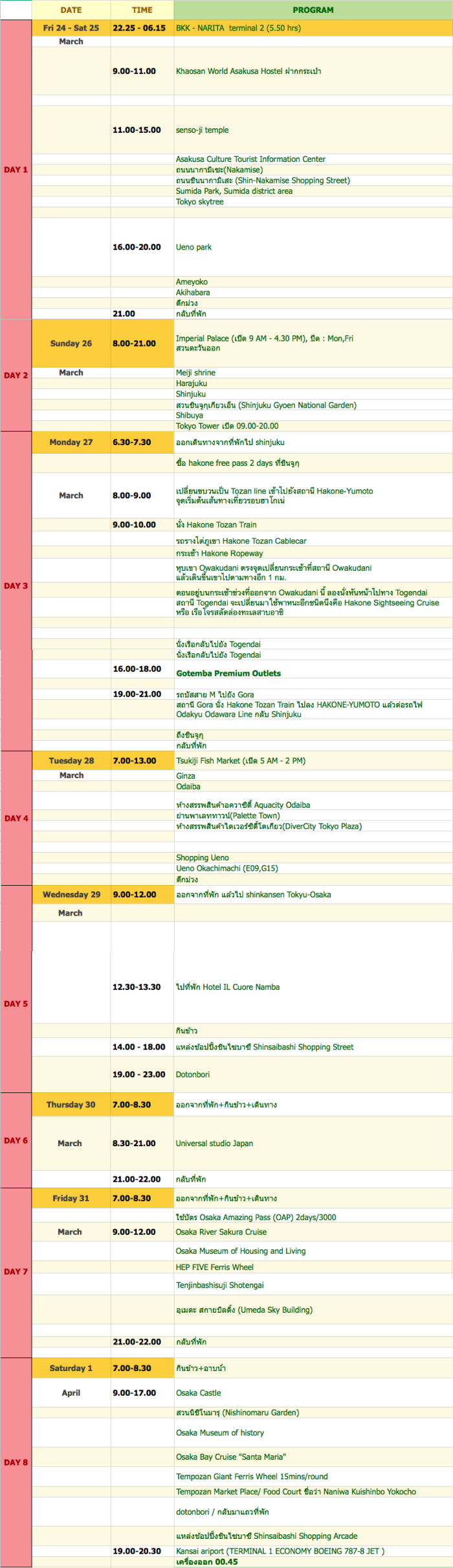 รบกวนสอบถามเกี่ยวกับแพลนเที่ยวที่โตเกียวและโอซาก้าค่ะ