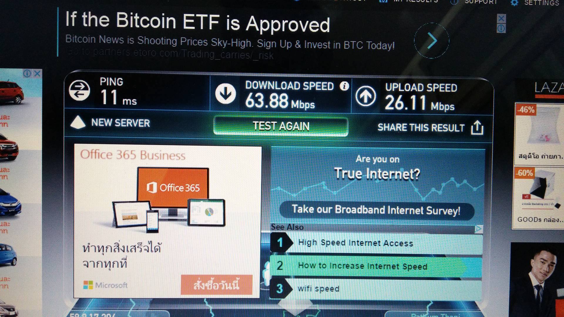 ทีนี้พอมาเทสความเร็ว ถ้าเทสผ่านสาย LAN จะได้ 60+/25+ ตลอด