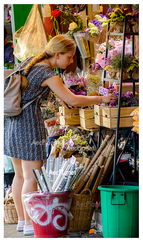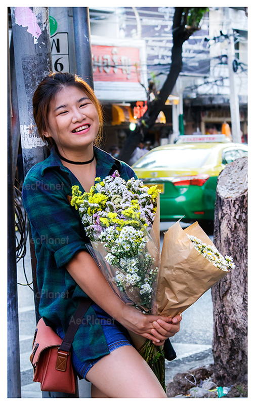 ตอนเดินๆ เห็นสาวๆ สามสี่คนเดินมาซื้อดอกไม้ แล้วก็มาโพสต์ท่าถ่ายกันข้างๆ บอกว่าขอถ่ายภาพด้วย ได้ไหม
