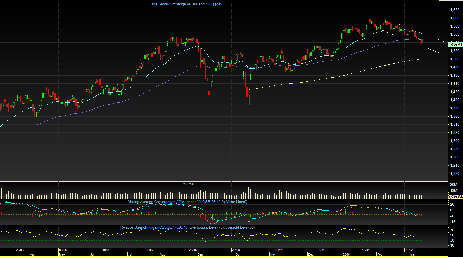 ก็ไม่สามารถผ่านขึ้นไปได้ ส่วนภาพใหญ่นั้นยังคงมองเป็น "Sideway Down" มาลุ้นกันตรง Support line 1530+-