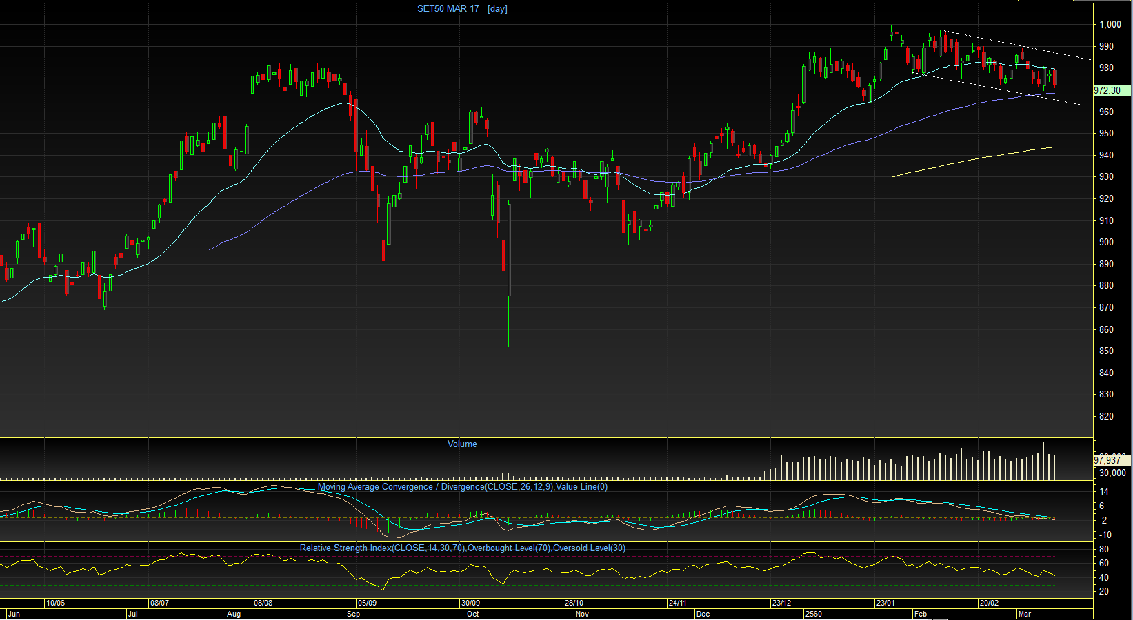 ก็ไม่สามารถผ่านขึ้นไปได้ ส่วนภาพใหญ่นั้นยังคงมองเป็น "Sideway Down" มาลุ้นกันตรง Support line 964+-