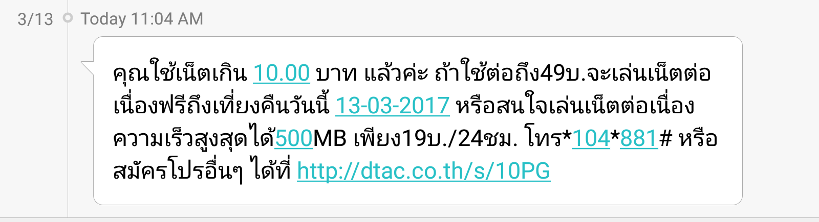 คุณดีแตก ทำไมคุณมั่วได้ขนาดนี้ มันสื่อว่าระบบคุณไม่น่าเชื่อถือเลย มีข้อความนี้ส่งมาทั้งๆ ที่ไม่ได้ใช้data เลย