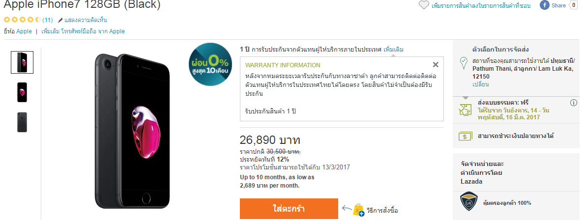 กระทู้นี้อยากจะแชร์ข้อมูลให้คนที่ไม่รู้ได้รู้นะครับ เรื่องมีอยู่ว่าผมซื้อ iphone7 128GB ที่จัดจำหน่ายโดย Lazada ตัวในรูปนี้ครับ